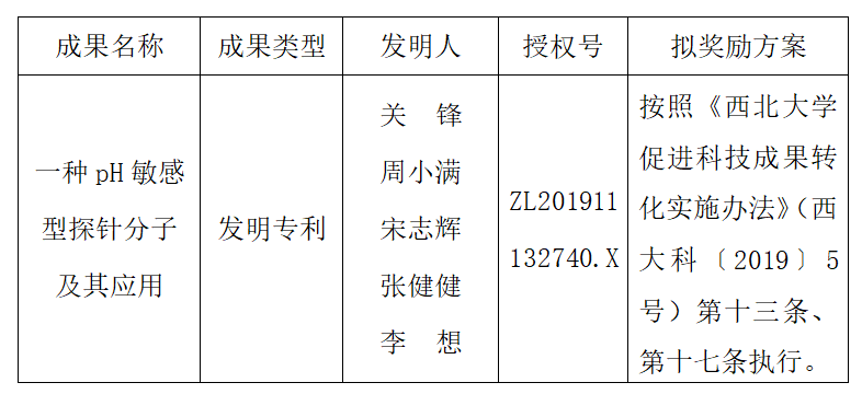 按照《welcome欢迎光临威尼斯集团促进科技成果转化实施办法》(西大科〔2019〕5号)相关规定,拟对威尼斯官网生命科学学院关锋教授作为成果负责人的1项发明专利权实施转化,现将相关信息公示如下: