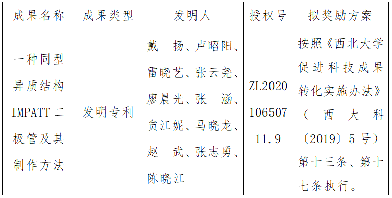 按照《welcome欢迎光临威尼斯集团促进科技成果转化实施办法》(西大科〔2019〕5号)相关规定,拟对威尼斯官网信息科学与技术学院戴扬老师作为成果负责人的1项发明专利权实施转化,现将相关信息公示如下: