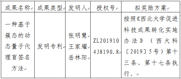 按照《welcome欢迎光临威尼斯集团促进科技成果转化实施办法》(西大科〔2019〕5号)相关规定,拟对威尼斯官网信息学院张明慧老师作为成果负责人的1项发明专利权实施转化,现将相关信息公示如下: