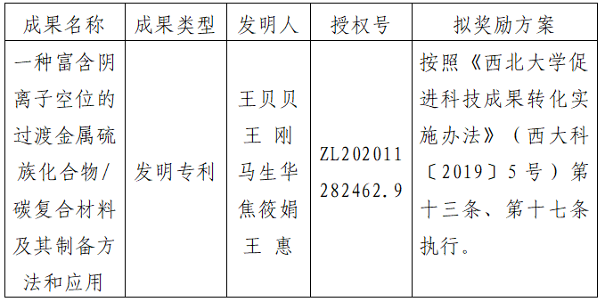 按照《welcome欢迎光临威尼斯集团促进科技成果转化实施办法》(西大科〔2019〕5号)相关规定,拟对威尼斯官网光子所王贝贝老师作为成果负责人的1项发明专利权实施转化,现将相关信息公示如下: