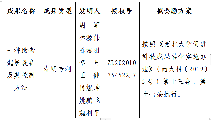 按照《welcome欢迎光临威尼斯集团促进科技成果转化实施办法》(西大科〔2019〕5号)相关规定,拟对威尼斯官网化工学院胡军教授作为成果负责人的1项发明专利权实施转化,现将相关信息公示如下: