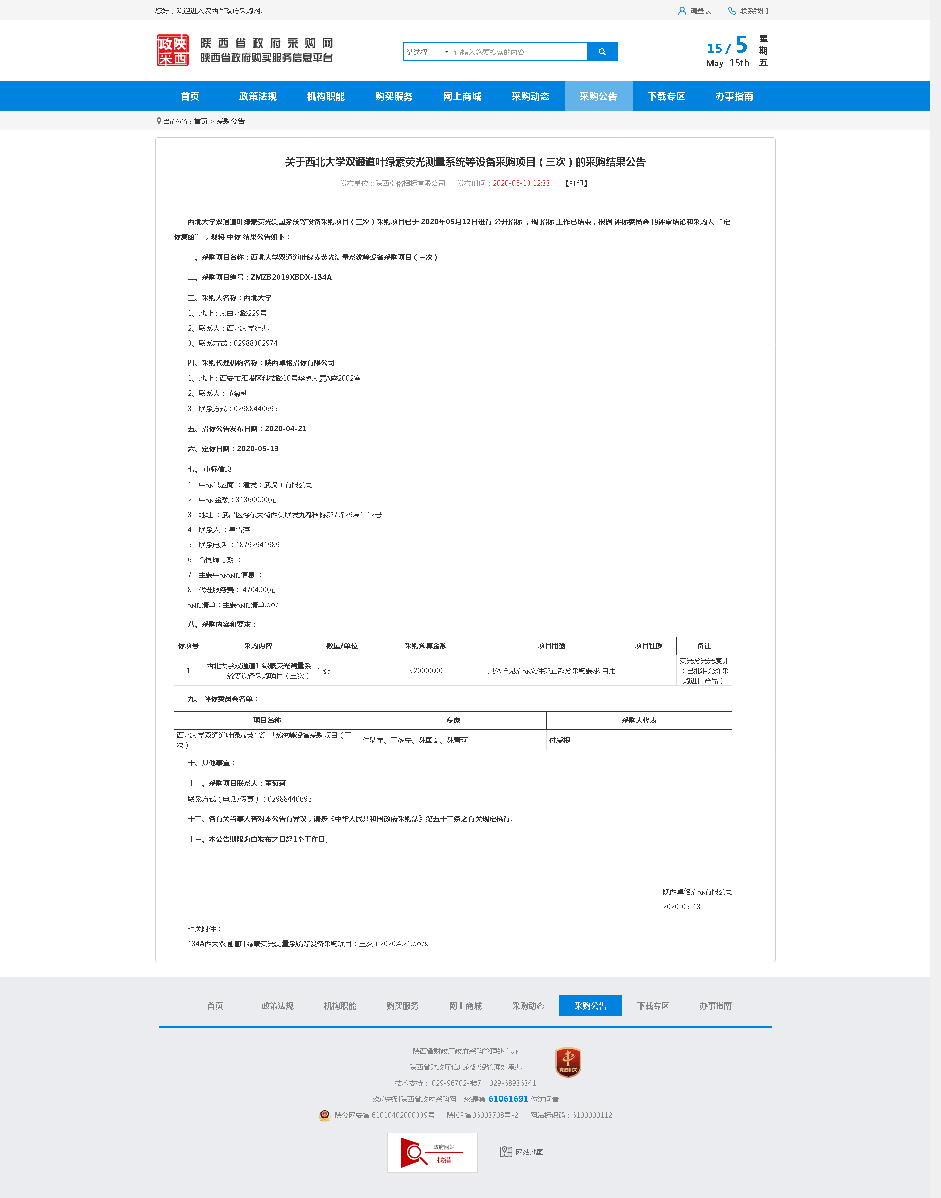 关于welcome欢迎光临威尼斯集团双通道叶绿素荧光测量系统等设备采购项目(三次)的采购结果公告