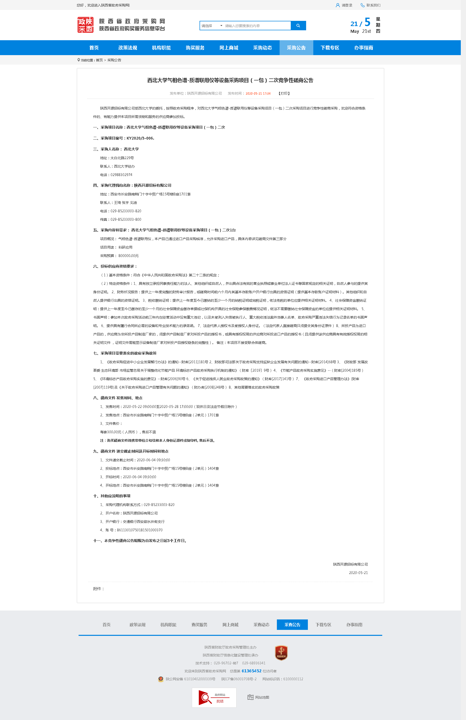 welcome欢迎光临威尼斯集团气相色谱-质谱联用仪等设备采购项目(一包)二次竞争性磋商公告