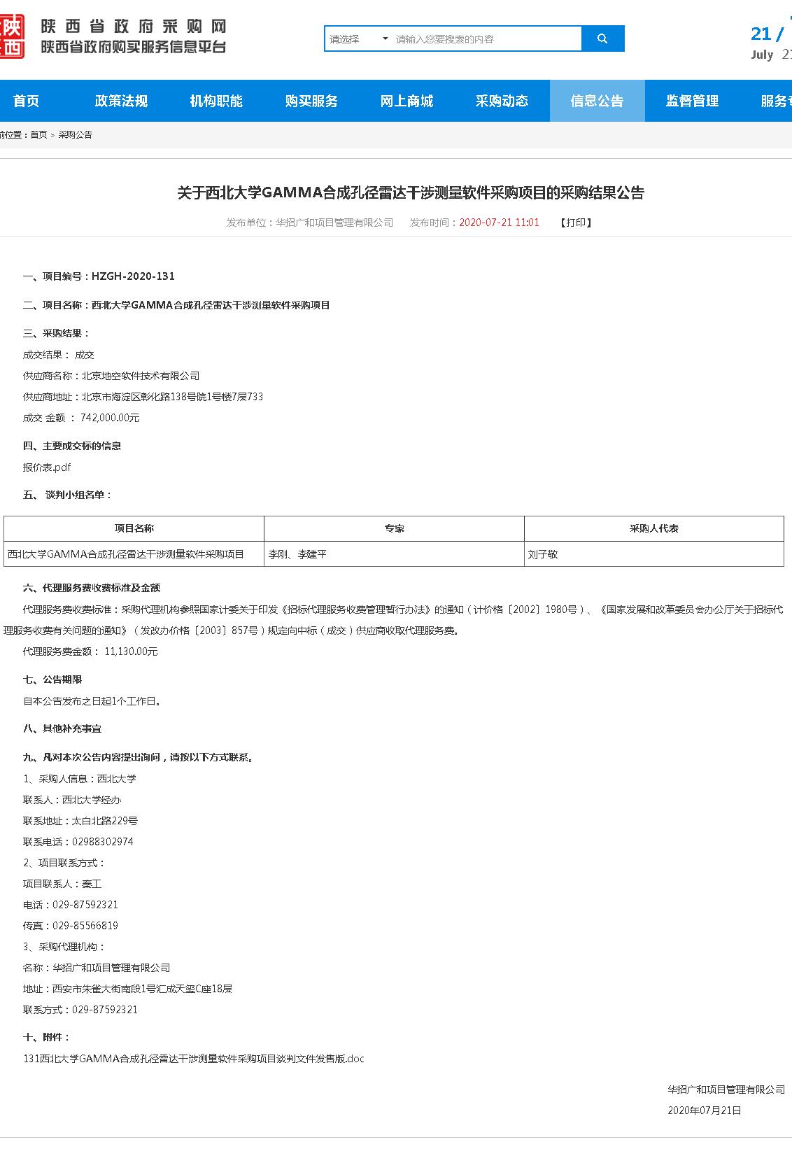 关于welcome欢迎光临威尼斯集团GAMMA合成孔径雷达干涉测量软件采购项目的采购结果公告