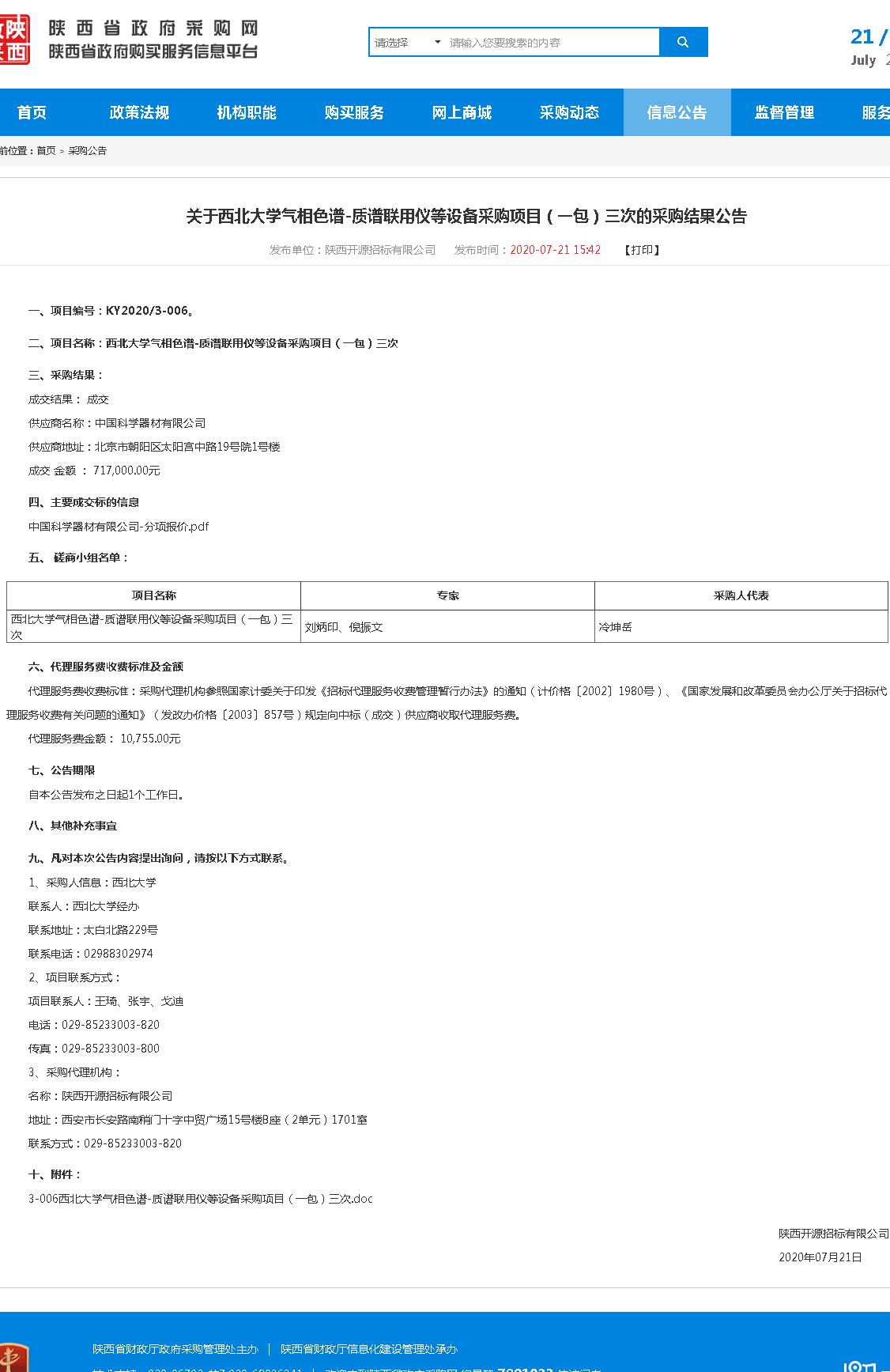 关于welcome欢迎光临威尼斯集团气相色谱-质谱联用仪等设备采购项目(一包)三次的采购结果公告
