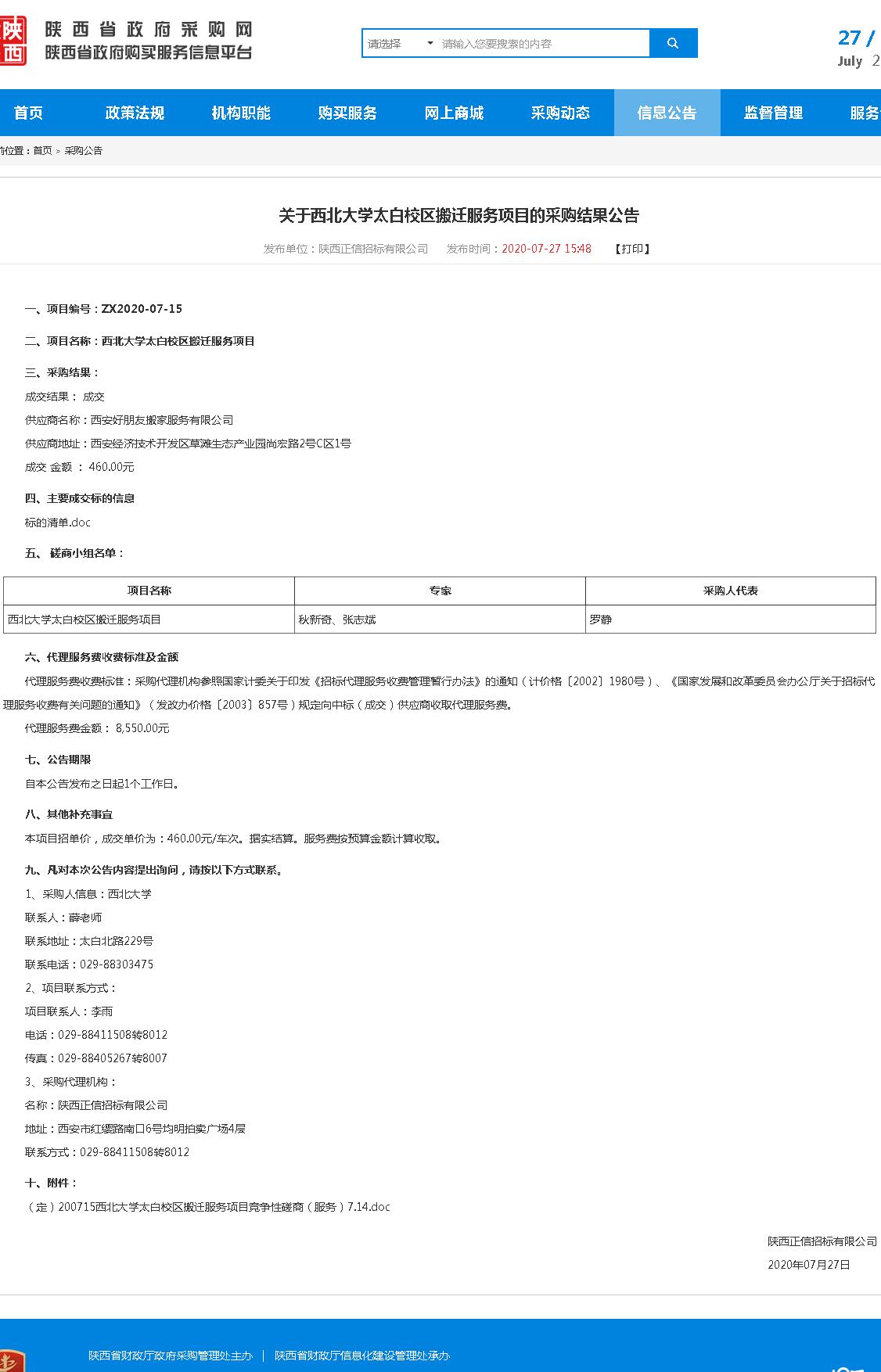 关于welcome欢迎光临威尼斯集团太白校区搬迁服务项目的采购结果公告