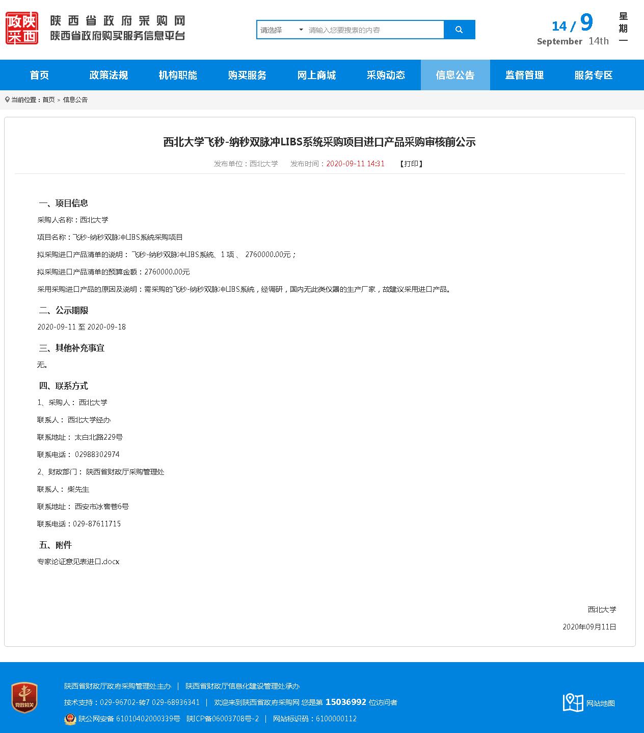 welcome欢迎光临威尼斯集团飞秒-纳秒双脉冲LIBS系统采购项目单一来源采购征求意见公示