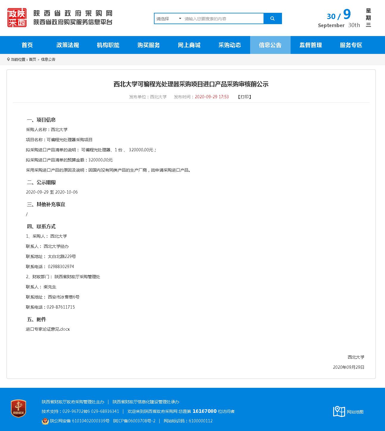 welcome欢迎光临威尼斯集团可编程光处理器采购项目进口产品采购审核前公示