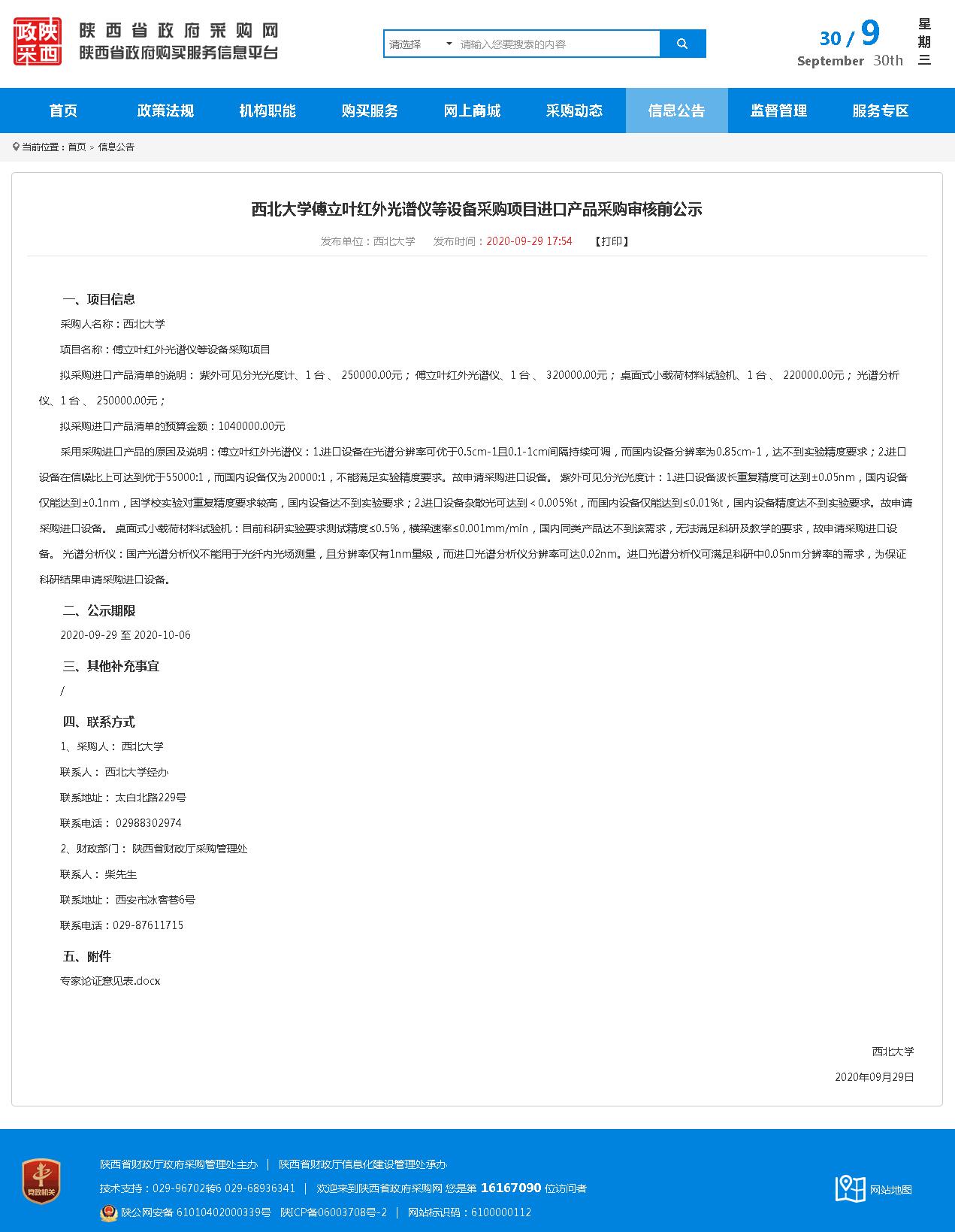 welcome欢迎光临威尼斯集团傅立叶红外光谱仪等设备采购项目进口产品采购审核前公示