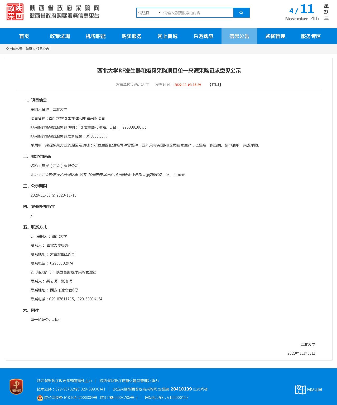 welcome欢迎光临威尼斯集团RF发生器和炬箱采购项目单一来源采购征求意见公示