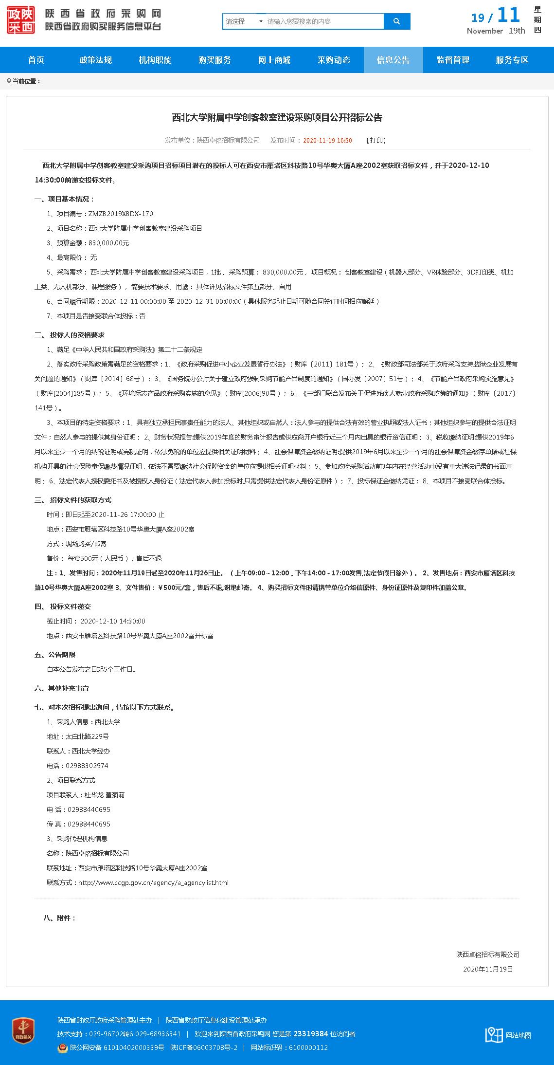 welcome欢迎光临威尼斯集团附属中学创客教室建设采购项目公开招标公告