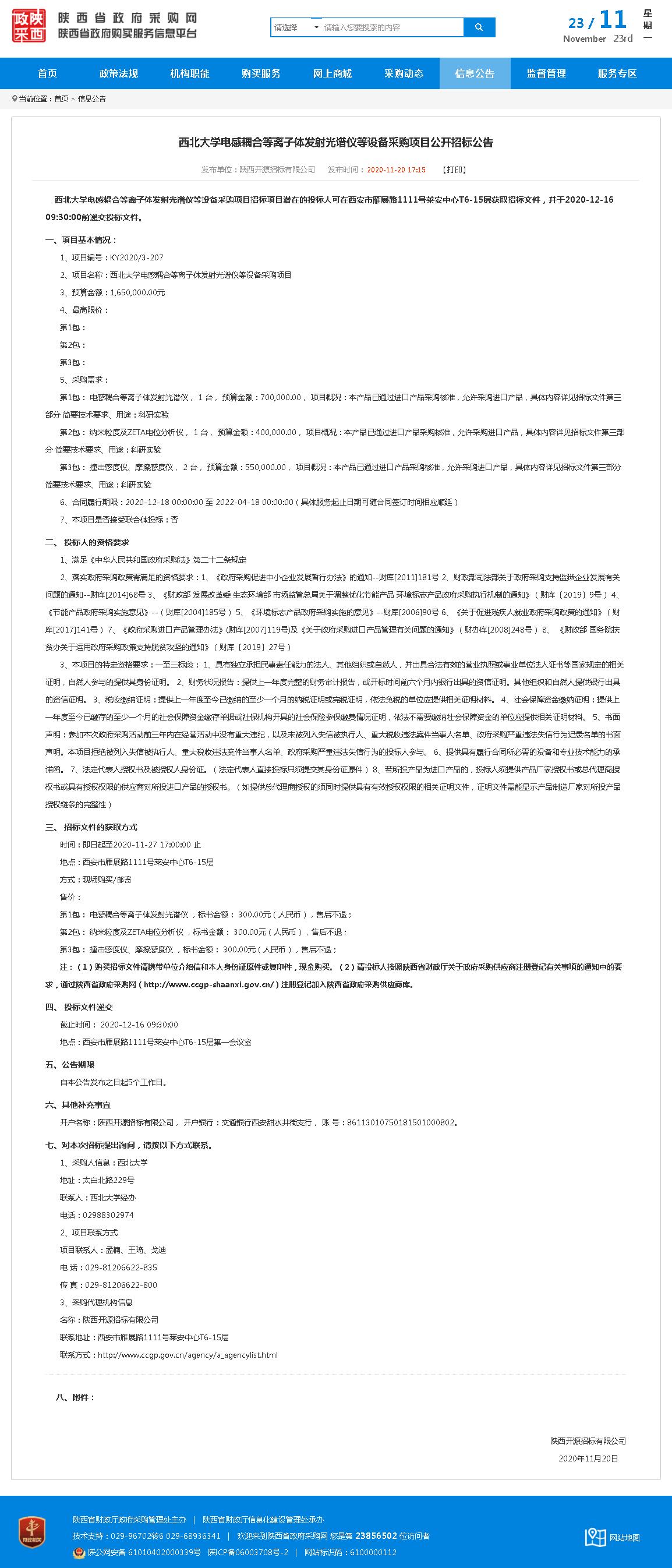 welcome欢迎光临威尼斯集团电感耦合等离子体发射光谱仪等设备采购项目公开招标公告
