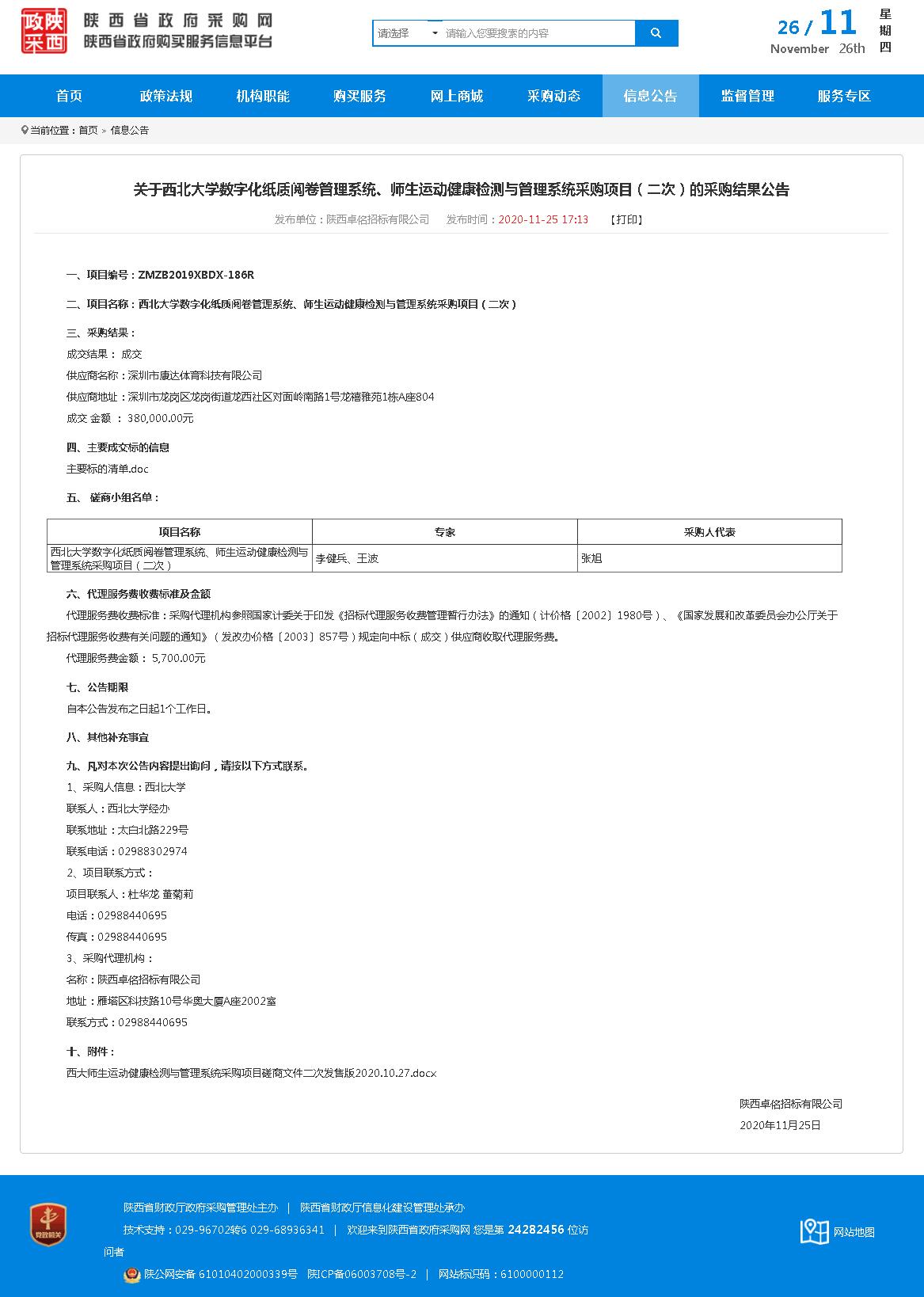 关于welcome欢迎光临威尼斯集团数字化纸质阅卷管理系统、师生运动健康检测与管理系统采购项目(二次)的采购结果公告