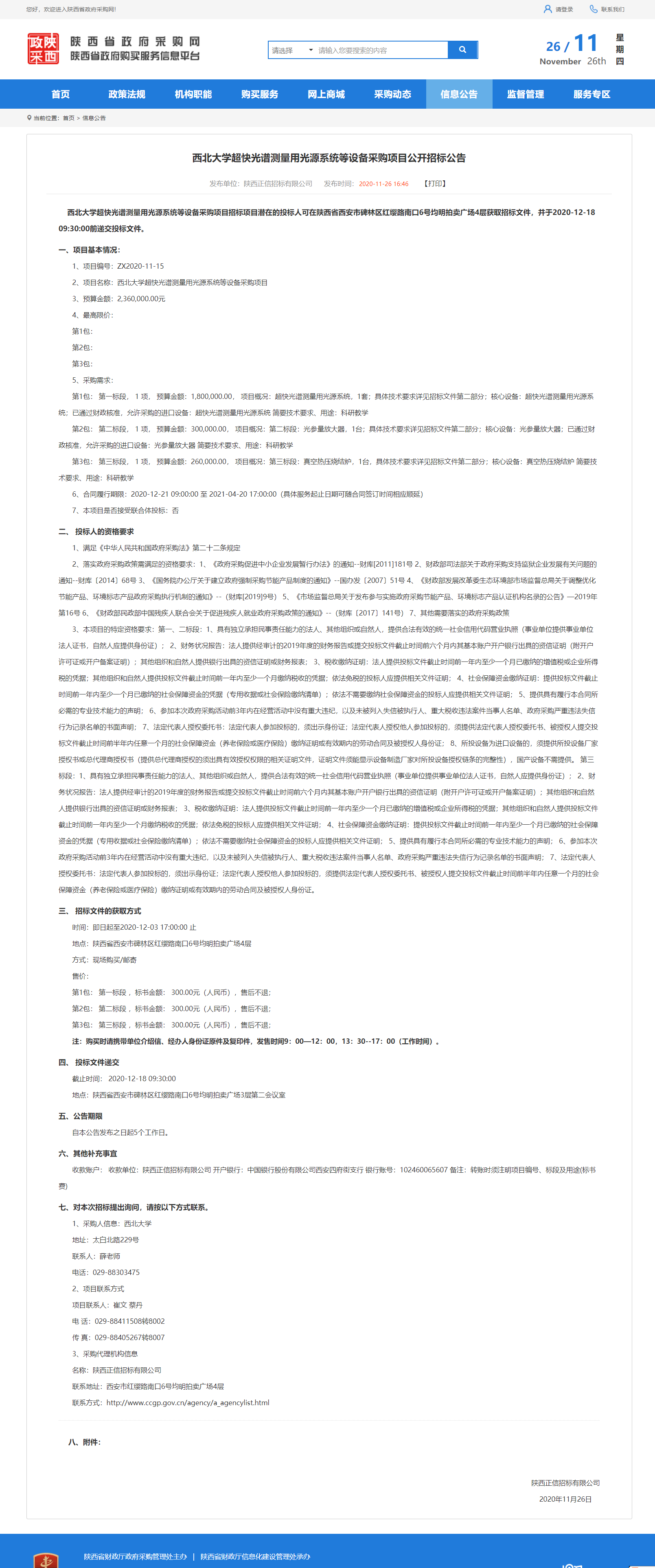 welcome欢迎光临威尼斯集团超快光谱测量用光源系统等设备采购项目公开招标公告 作者: 编辑:薛利娟 时间:2020-11-26 原公告链接:http://www.ccgp-shaanxi.gov.cn/notice/noticeDetail.do?noticeguid=8a85be3375d5d589017603aaa6b51977