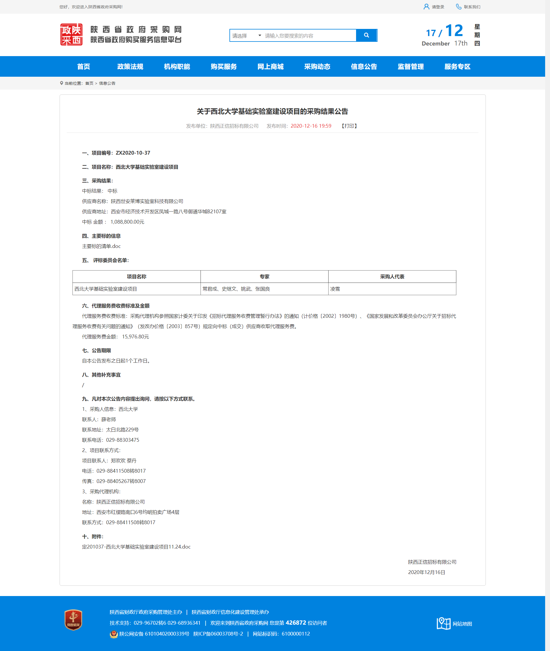 关于welcome欢迎光临威尼斯集团基础实验室建设项目的采购结果公告 作者: 编辑:薛利娟 时间:2020-12-17 原公告地址:http://www.ccgp-shaanxi.gov.cn/notice/noticeDetail.do?noticeguid=8a85be33765f9dd001766b69b5de2728
