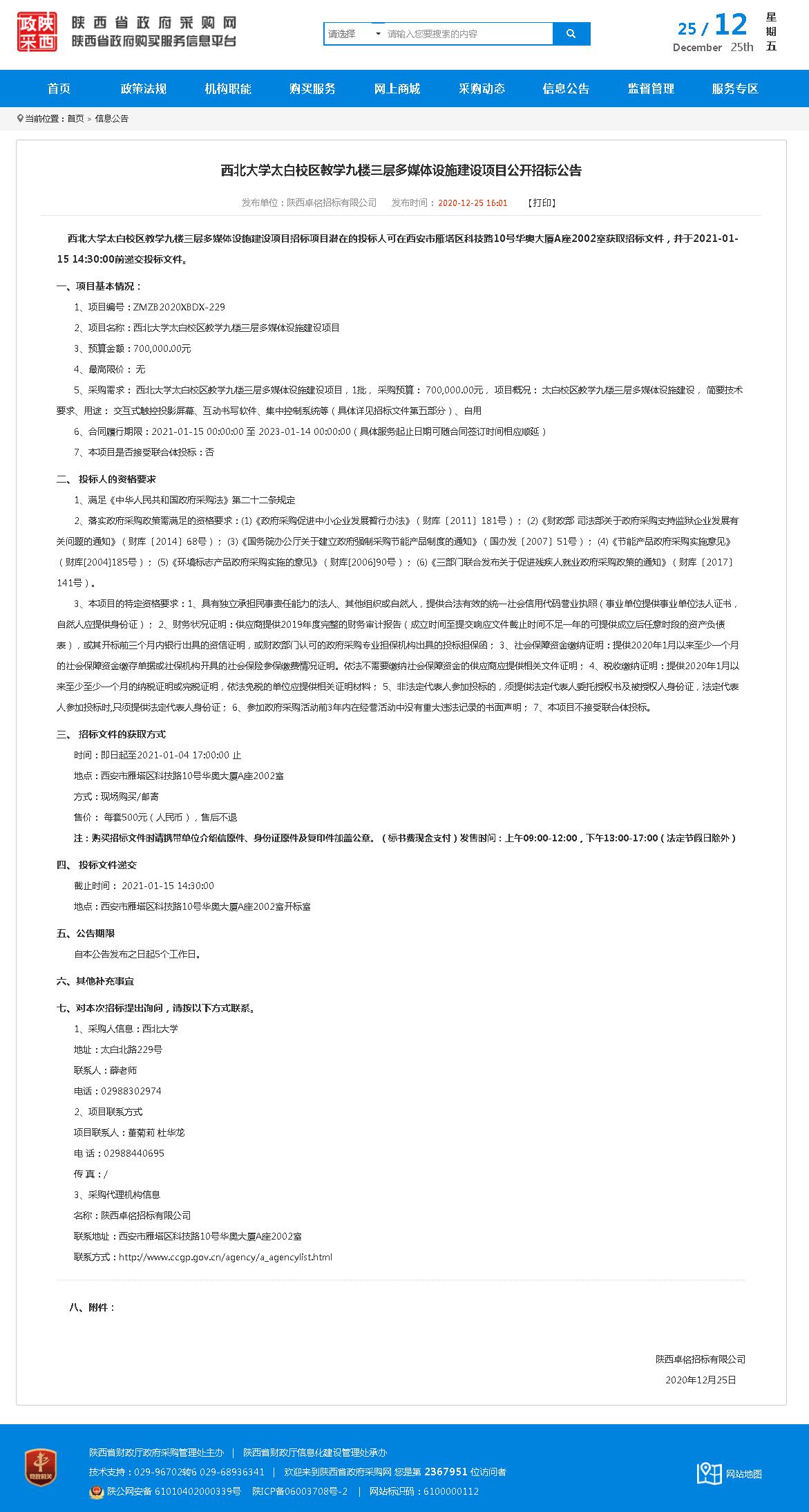 welcome欢迎光临威尼斯集团太白校区教学九楼三层多媒体设施建设项目公开招标公告