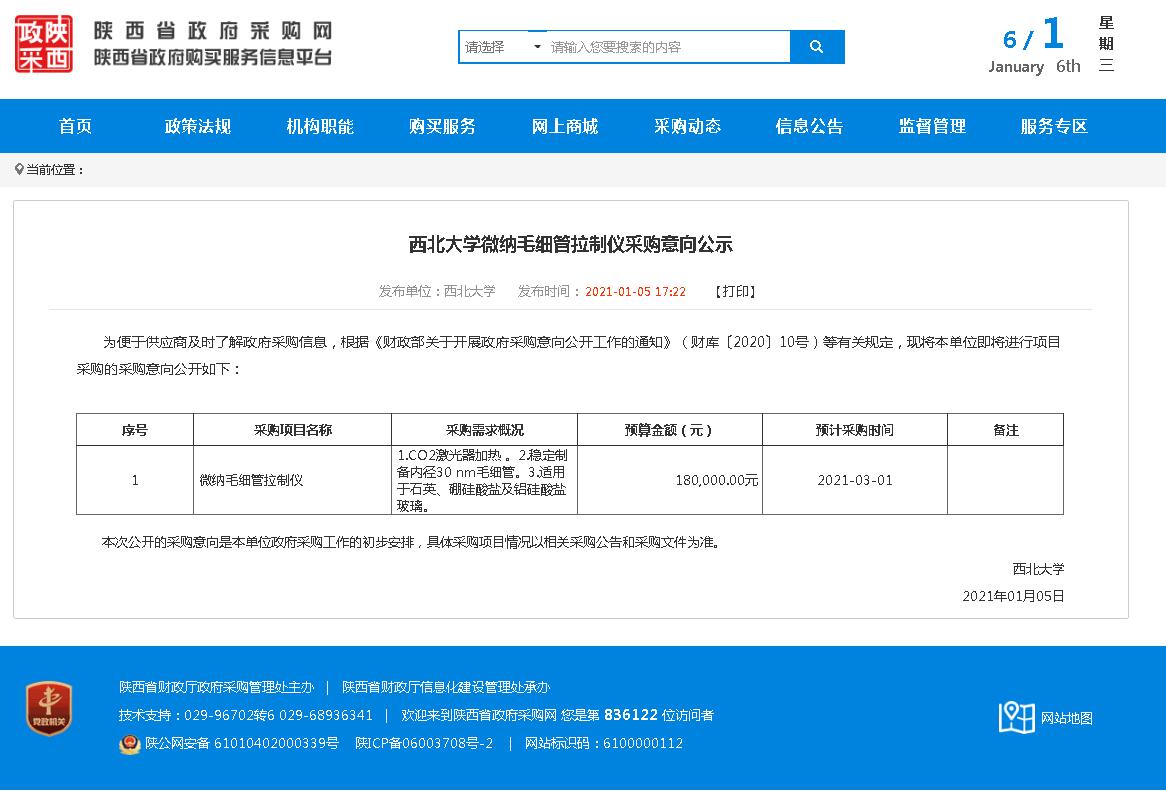 welcome欢迎光临威尼斯集团微纳毛细管拉制仪采购意向公示