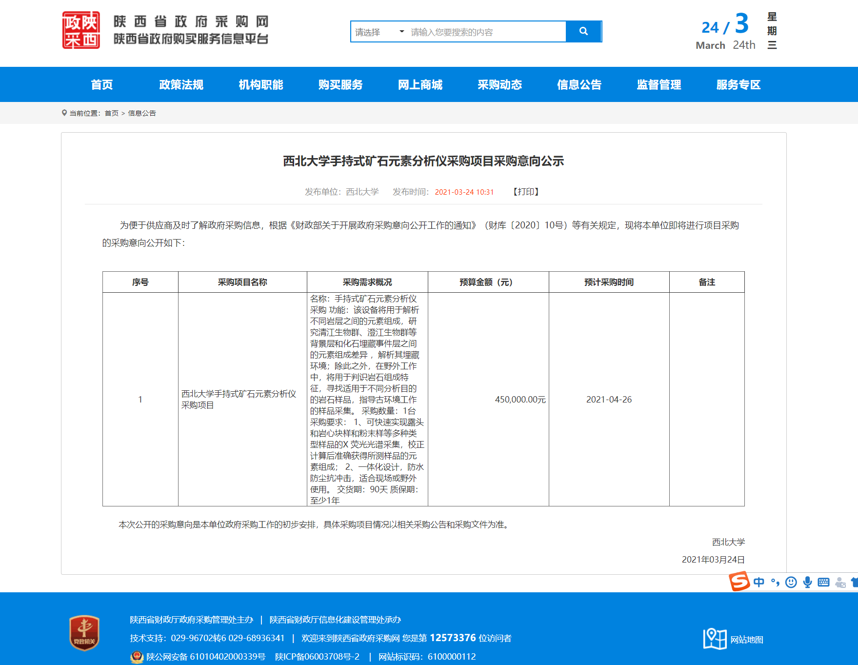 welcome欢迎光临威尼斯集团手持式矿石元素分析仪采购项目采购意向公示