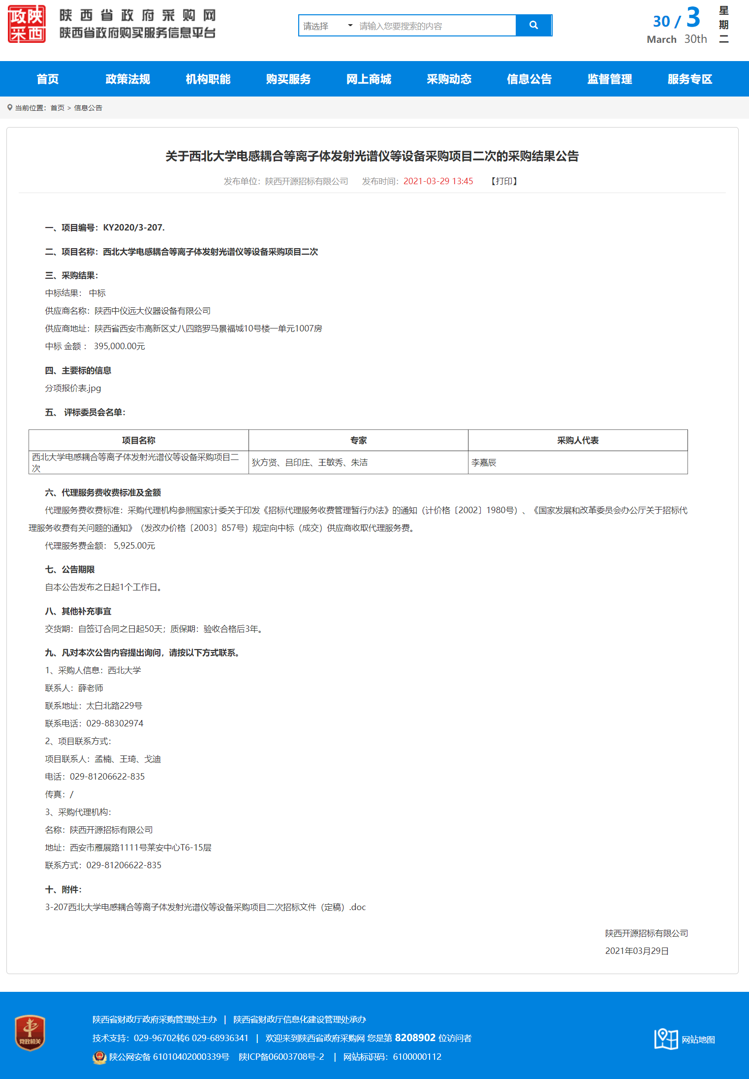 welcome欢迎光临威尼斯集团电感耦合等离子体发射光谱仪等设备采购项目二次的采购结果公告