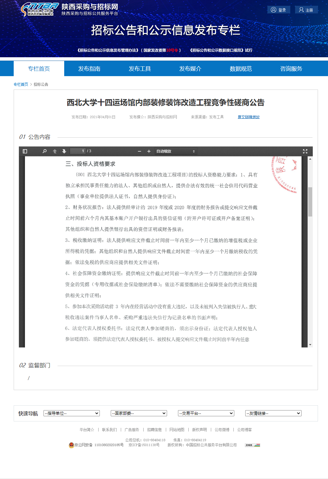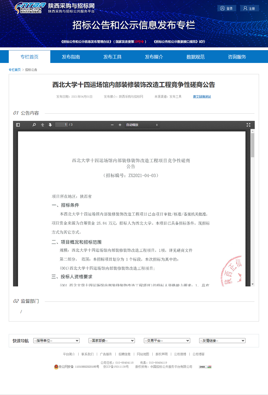 welcome欢迎光临威尼斯集团十四运场馆内部装修装饰改造工程竞争性磋商公告 作者: 编辑:薛利娟 时间:2021-04-02 原公告链接地址:http://bulletin.sntba.com/biddingBulletin/2021-04-01/283967.html