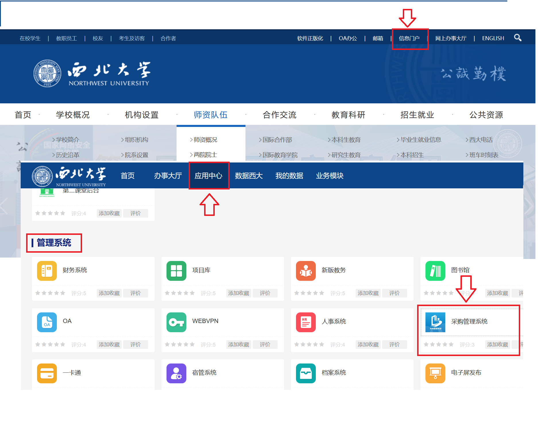 校内各单位可通过校园网首页右上角信息门户登陆后,选择应用中心-在管理系统栏目选择登录采购管理系统。或者通过welcome欢迎光临威尼斯集团采购与招标办公室网站首页“采购管理”登录,请使用谷歌、火狐或者微软浏览器登陆。