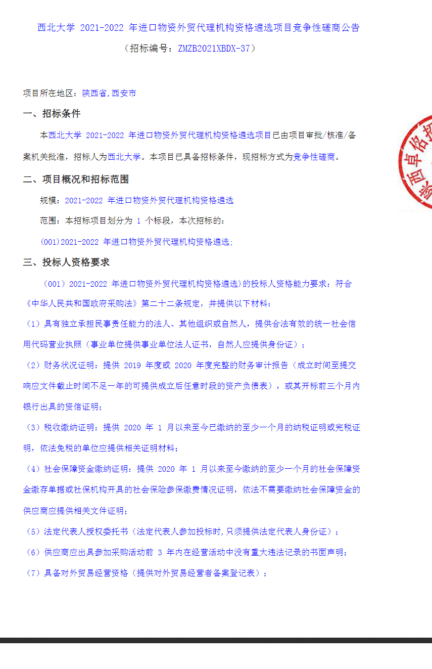 welcome欢迎光临威尼斯集团2021-2022年进口物资外贸代理机构资格遴选项目竞争性磋商公告