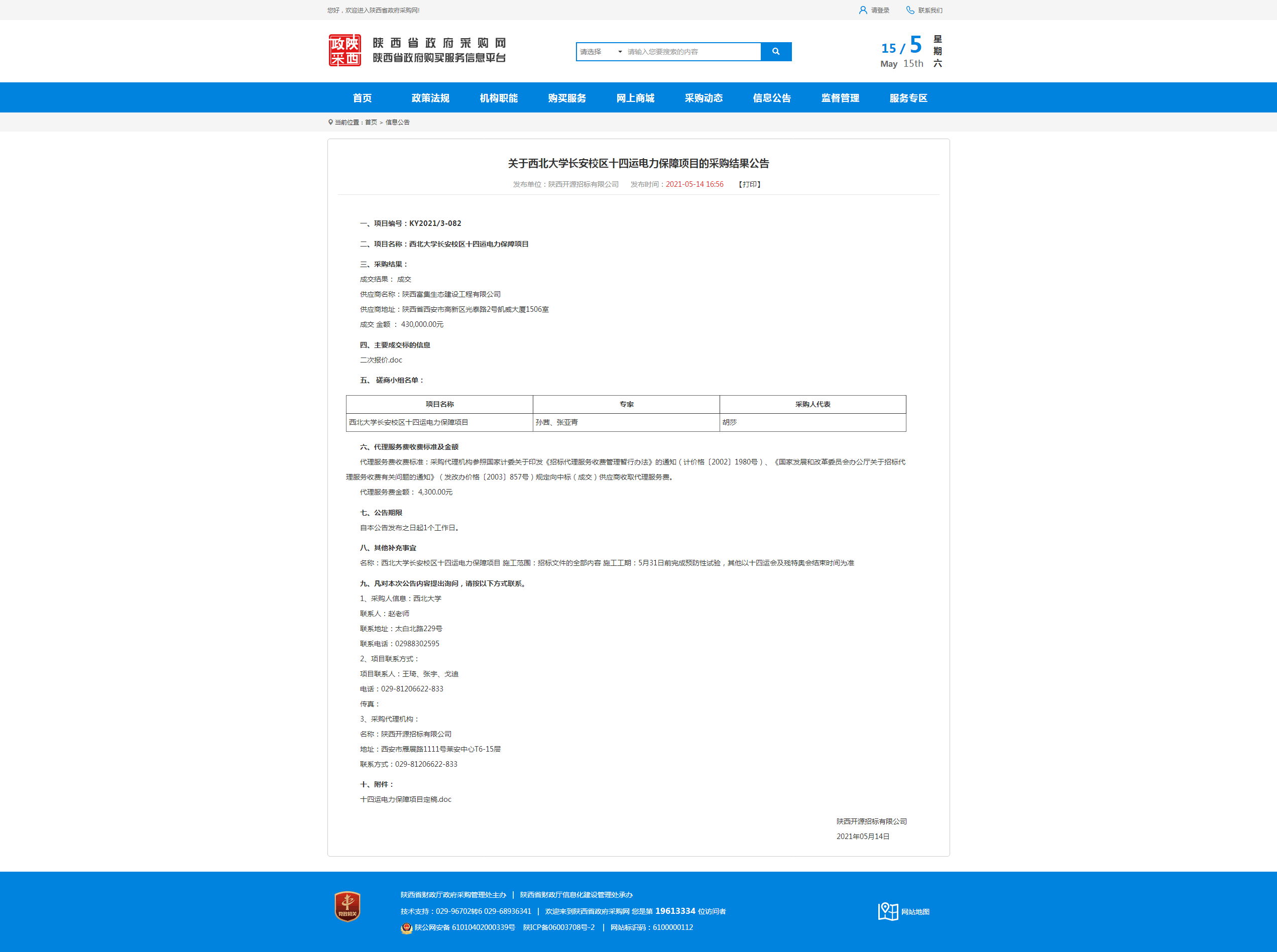 关于welcome欢迎光临威尼斯集团长安校区十四运电力保障项目的采购结果公告