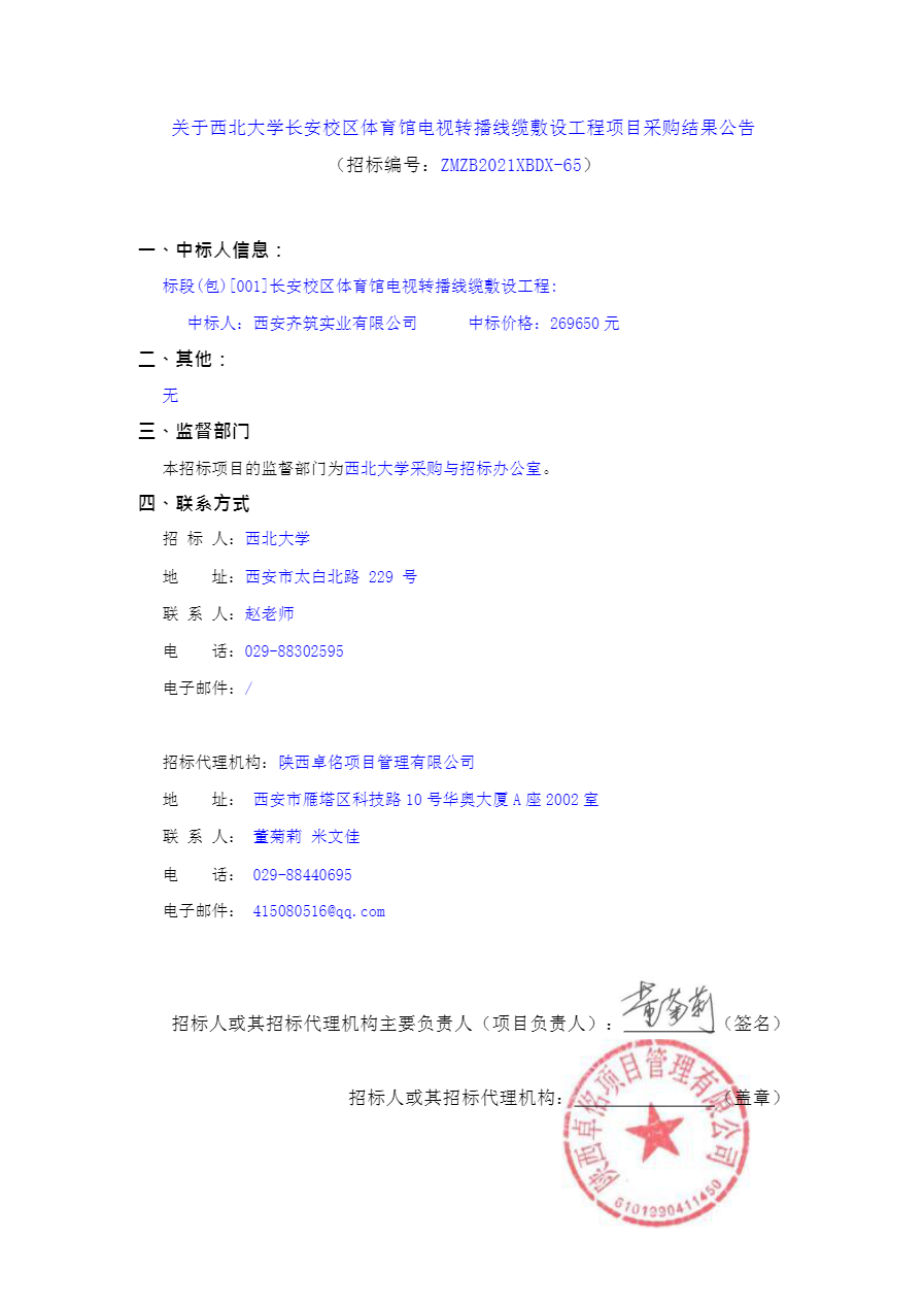 关于welcome欢迎光临威尼斯集团长安校区体育馆电视转播线缆敷设工程项目采购结果公告