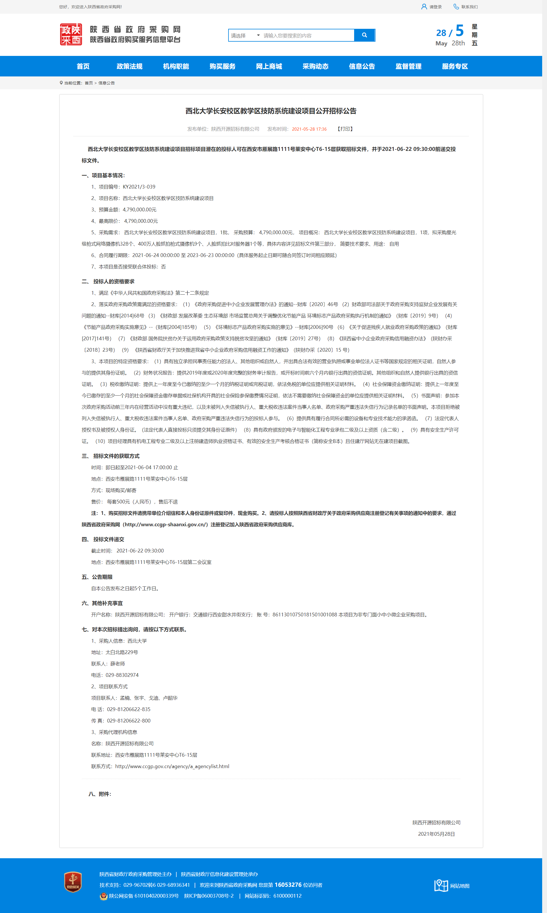 welcome欢迎光临威尼斯集团长安校区教学区技防系统建设项目公开招标公告 作者: 编辑:薛利娟 时间:2021-05-28 原公告地址:http://www.ccgp-shaanxi.gov.cn/notice/noticeDetail.do?noticeguid=8a85be3478a597990179b2102a6f761a