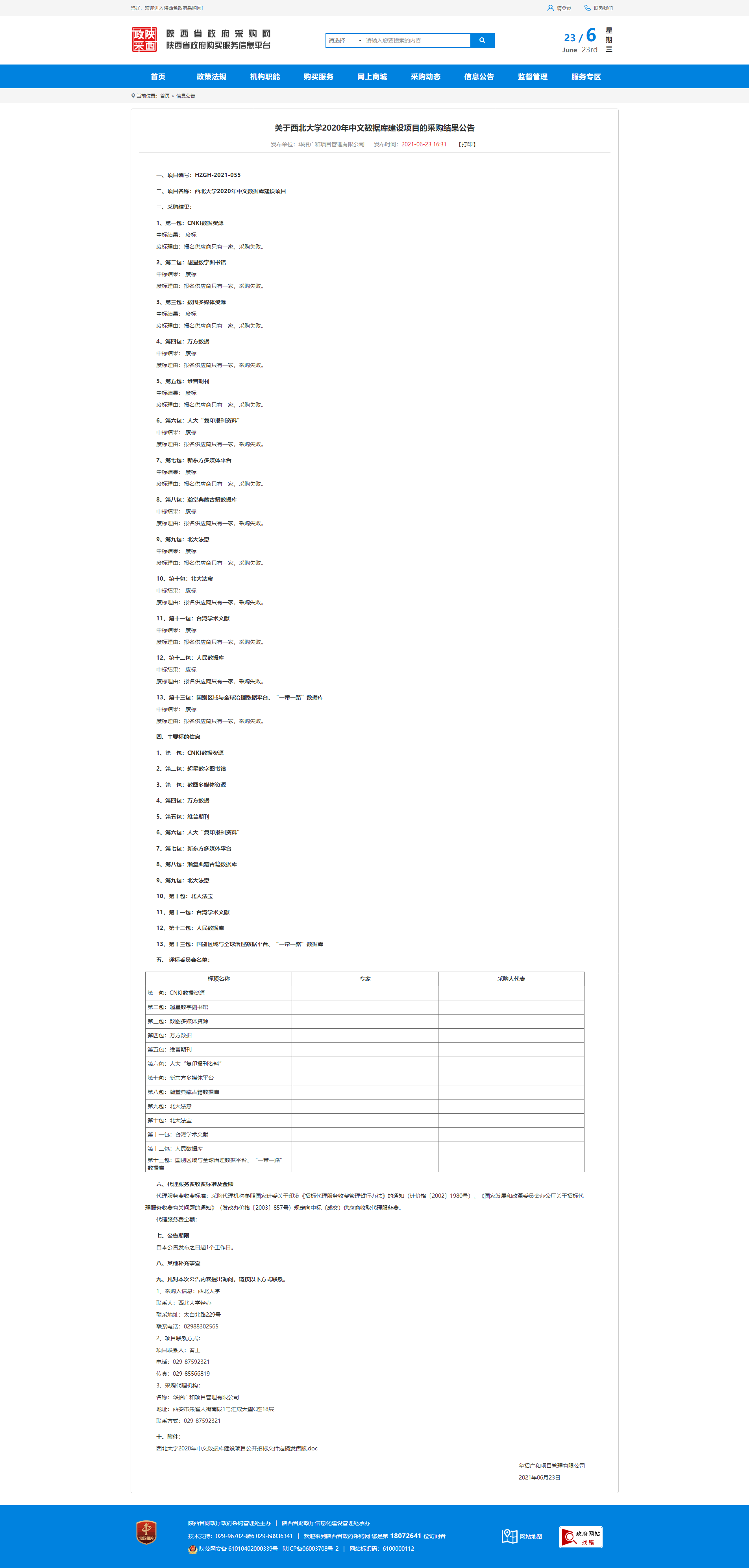 关于welcome欢迎光临威尼斯集团2020年中文数据库建设项目的采购结果公告