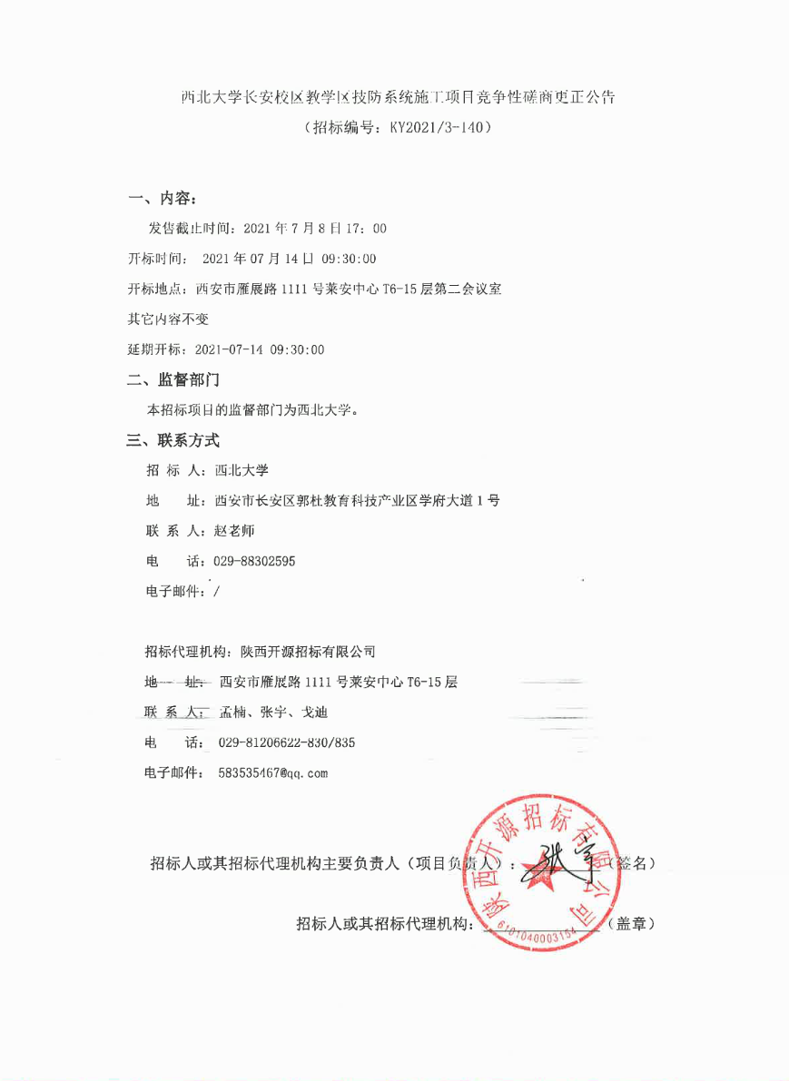 welcome欢迎光临威尼斯集团长安校区教学区技防系统施工项目竞争性磋商更正公告