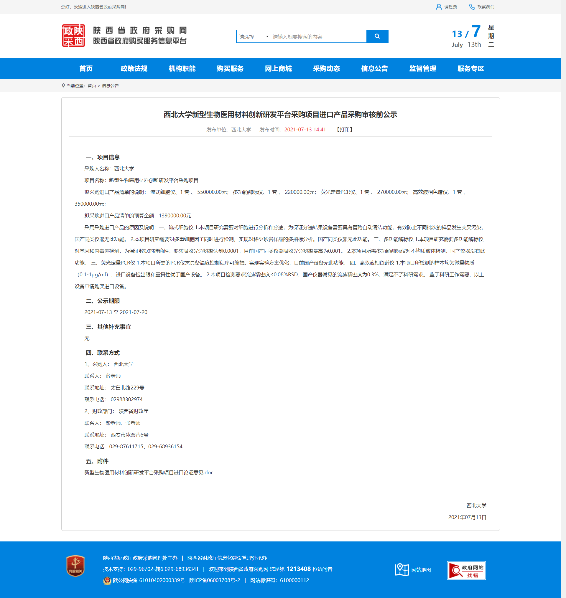 welcome欢迎光临威尼斯集团新型生物医用材料创新研发平台采购项目进口产品采购审核前公示 作者: 编辑:采购与招标办公室 时间:2021-07-13 原公示地址:http://www.ccgp-shaanxi.gov.cn/notice/noticeDetail.do?noticeguid=8a85be317a79693c017a9e7fb1b57286