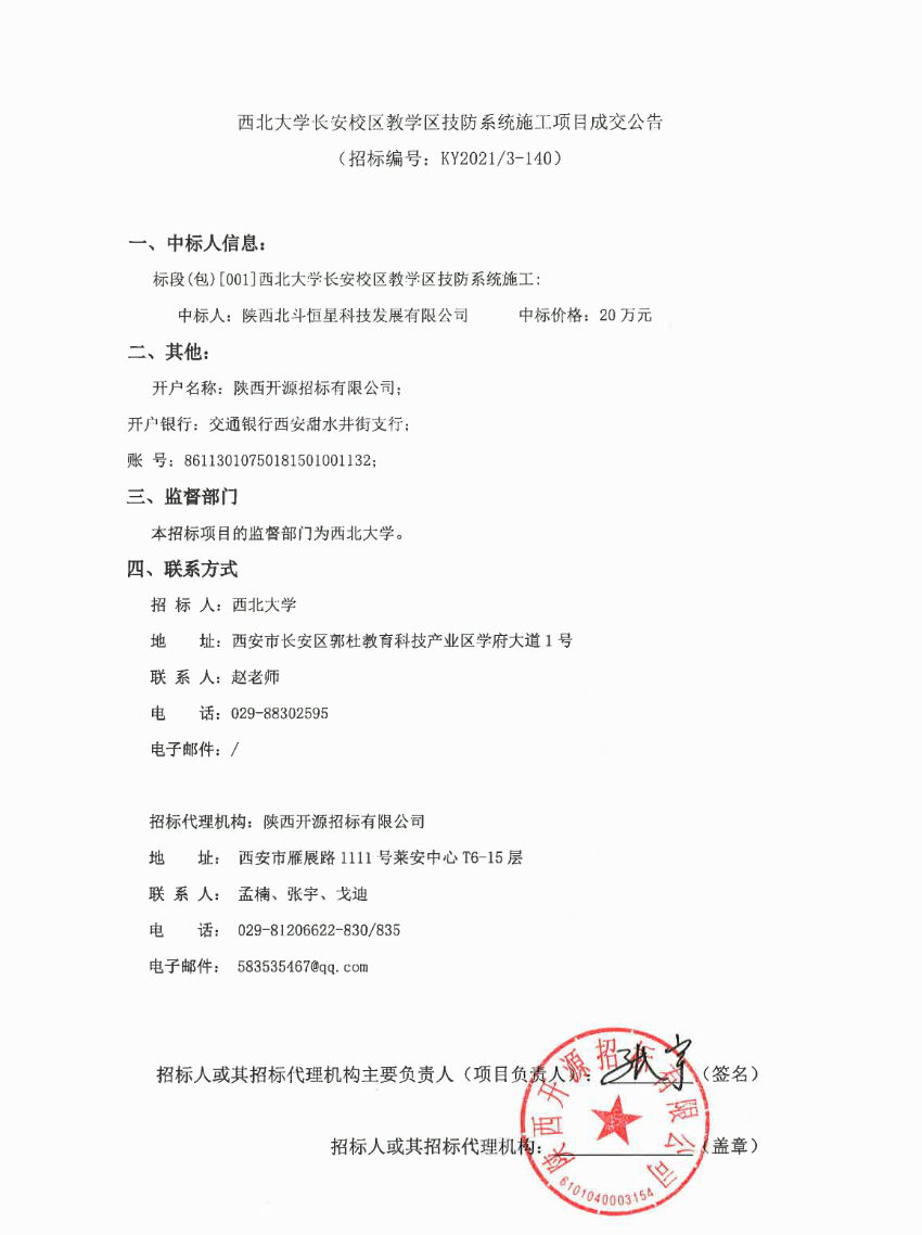 welcome欢迎光临威尼斯集团长安校区教学区技防系统施工项目成交公告