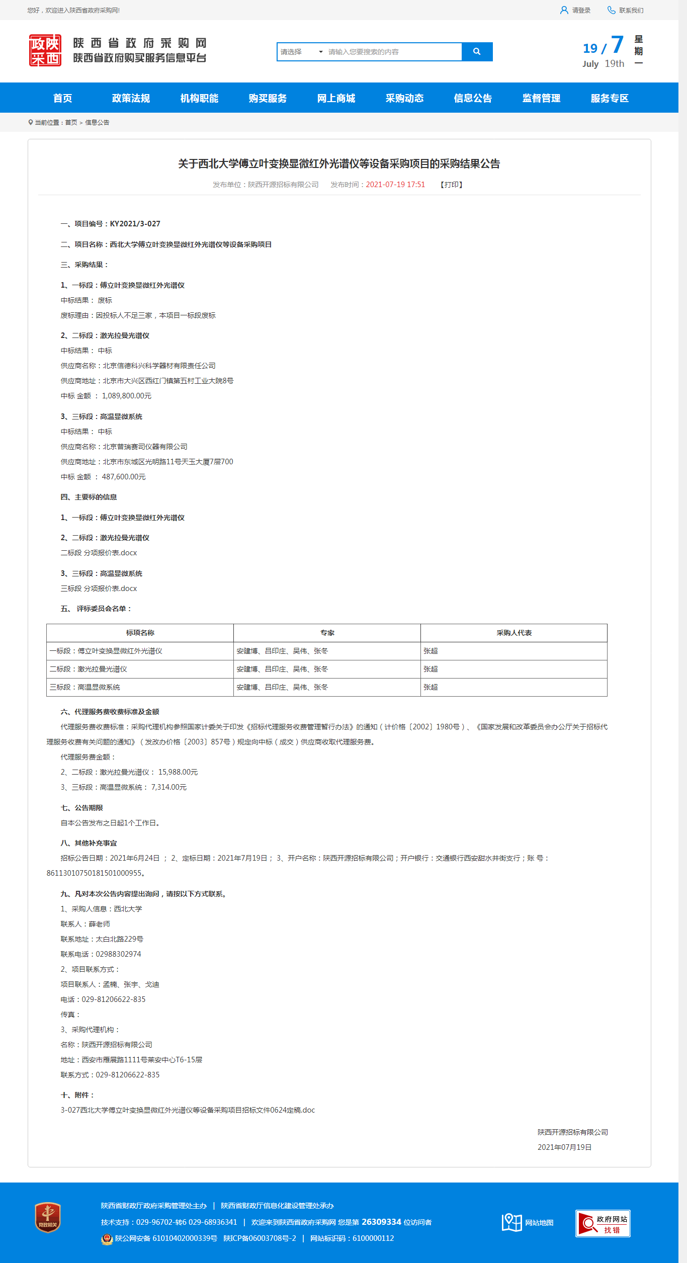 关于welcome欢迎光临威尼斯集团傅立叶变换显微红外光谱仪等设备采购项目的采购结果公告 作者: 编辑:采购与招标办公室 时间:2021-07-19 原公告地址:http://www.ccgp-shaanxi.gov.cn/notice/noticeDetail.do?noticeguid=8a85be337a79620e017abdb0b9d25220