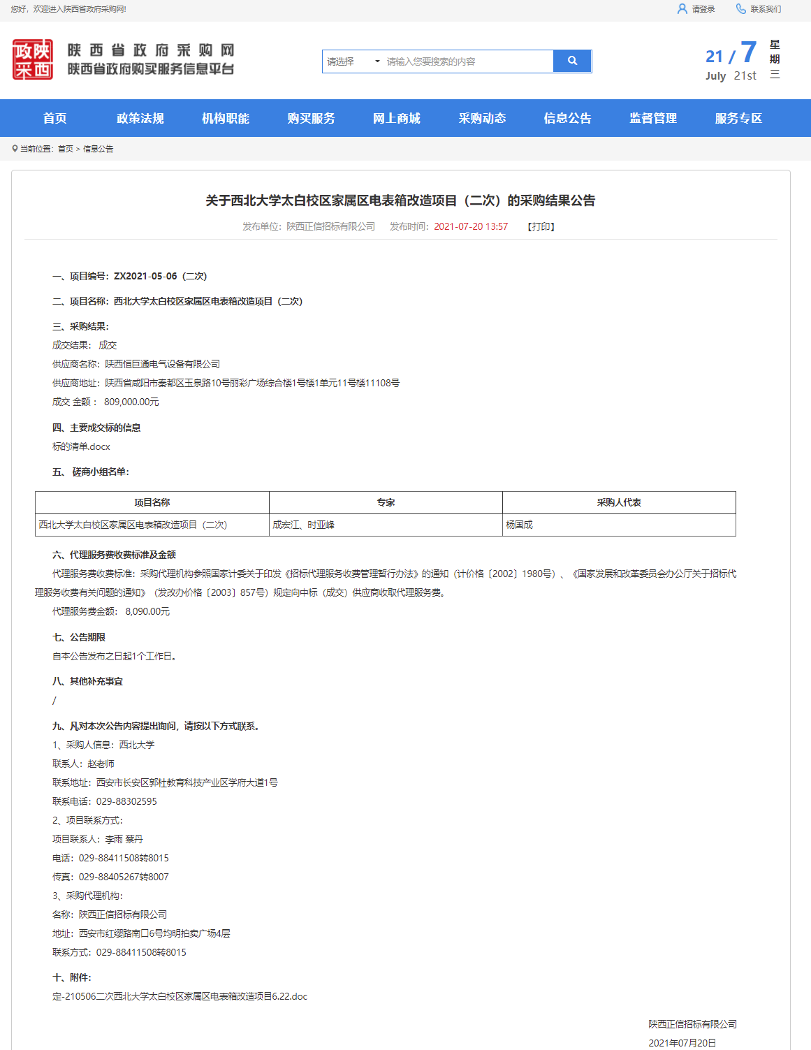 关于welcome欢迎光临威尼斯集团太白校区家属区电表箱改造项目(二次)的采购结果公告
