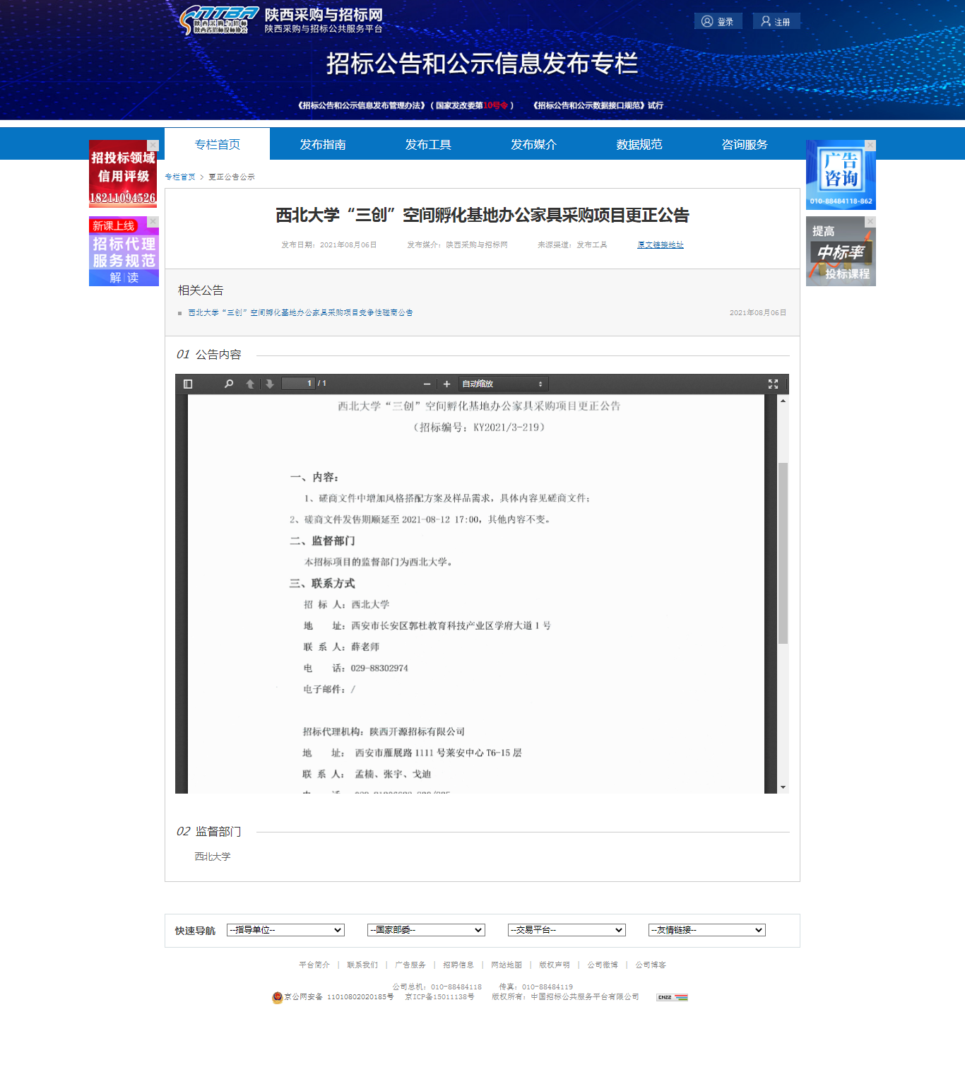 welcome欢迎光临威尼斯集团“三创”空间孵化基地办公家具采购项目更正公告 作者: 编辑:采购与招标办公室 时间:2021-08-06 原公告地址:http://bulletin.sntba.com/changeBulletin/2021-08-06/327902.html