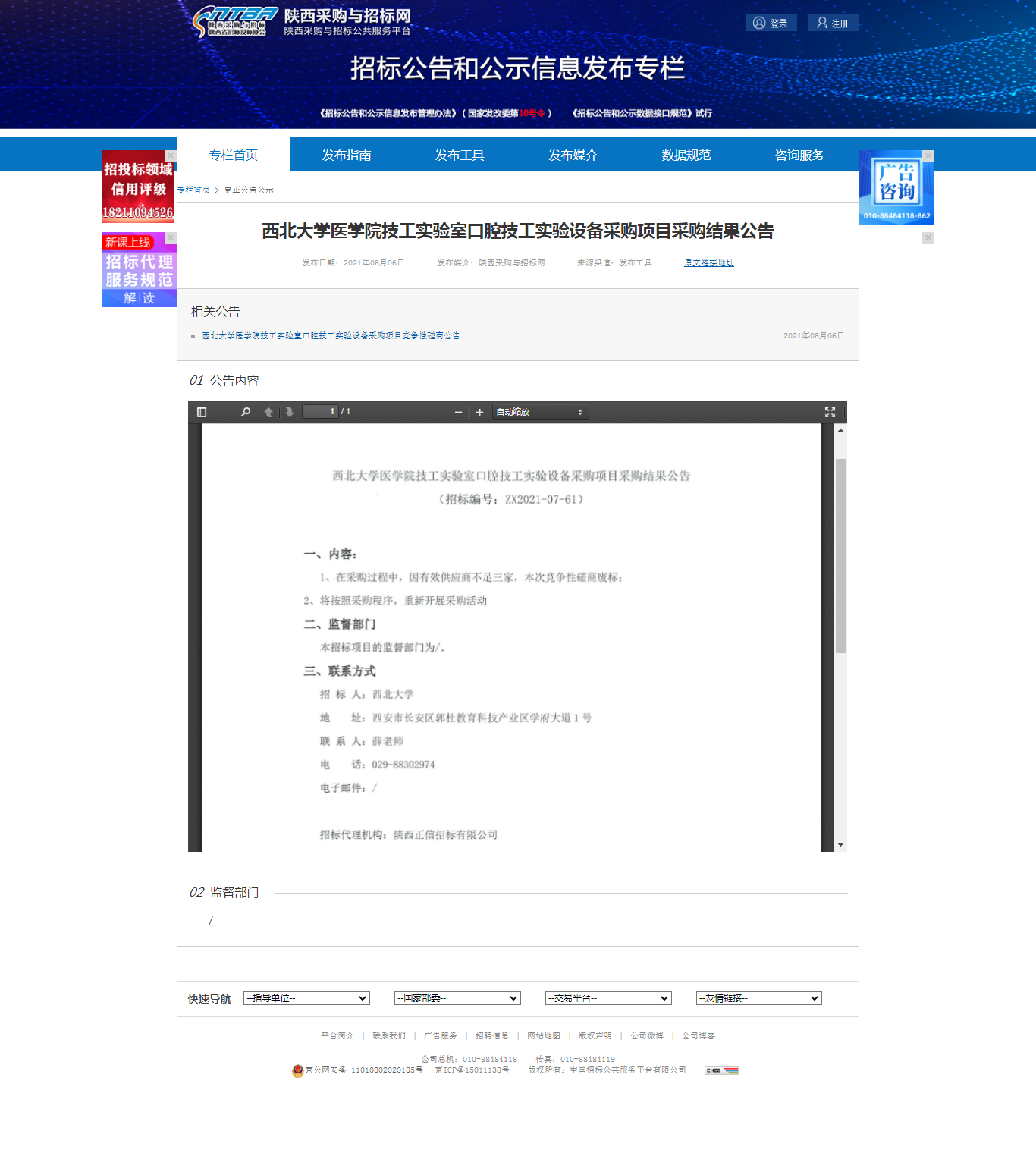 welcome欢迎光临威尼斯集团医学院技工实验室口腔技工实验设备采购项目采购结果公告 作者: 编辑:采购与招标办公室 时间:2021-08-06 原公告地址:http://bulletin.sntba.com/changeBulletin/2021-08-06/328182.html