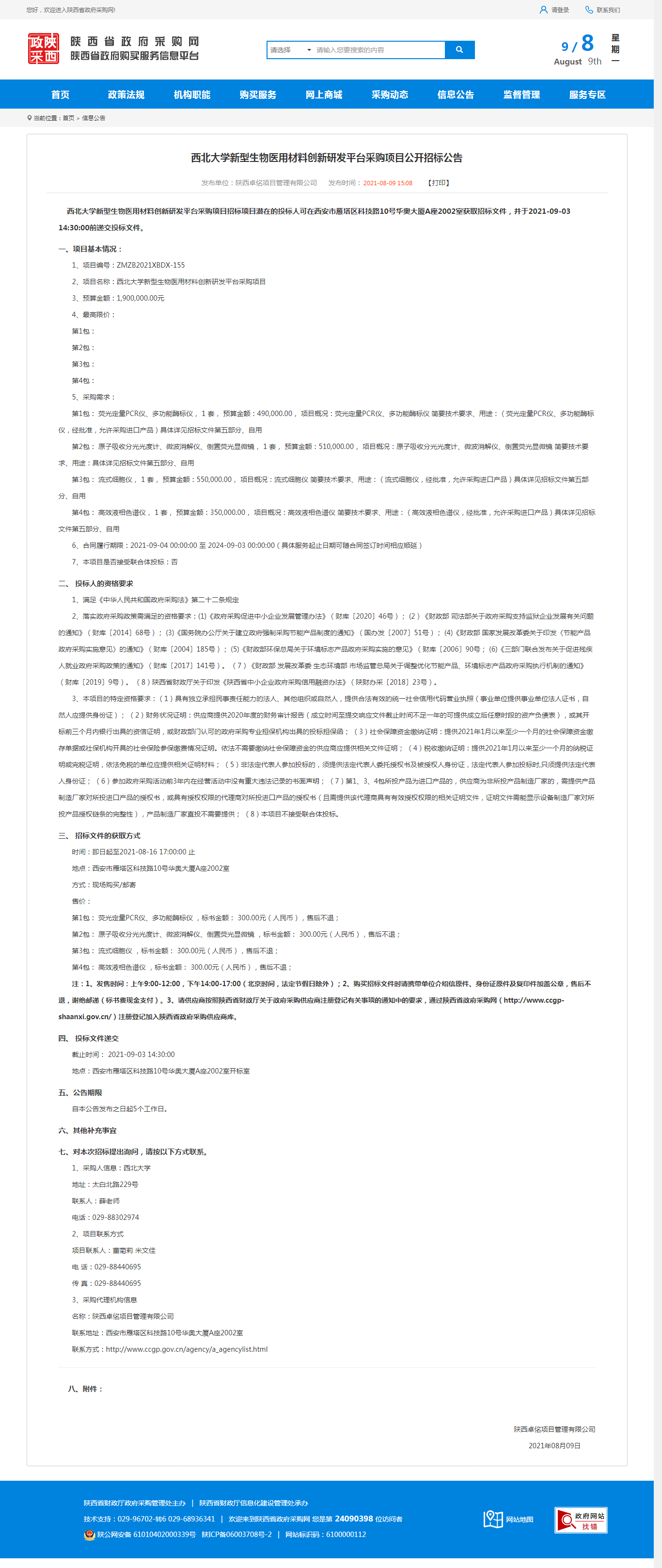welcome欢迎光临威尼斯集团新型生物医用材料创新研发平台采购项目公开招标公告 作者: 编辑:采购与招标办公室 时间:2021-08-09 原公告地址:http://www.ccgp-shaanxi.gov.cn/notice/noticeDetail.do?noticeguid=8a85be347b04610d017b2980fd8a15b4
