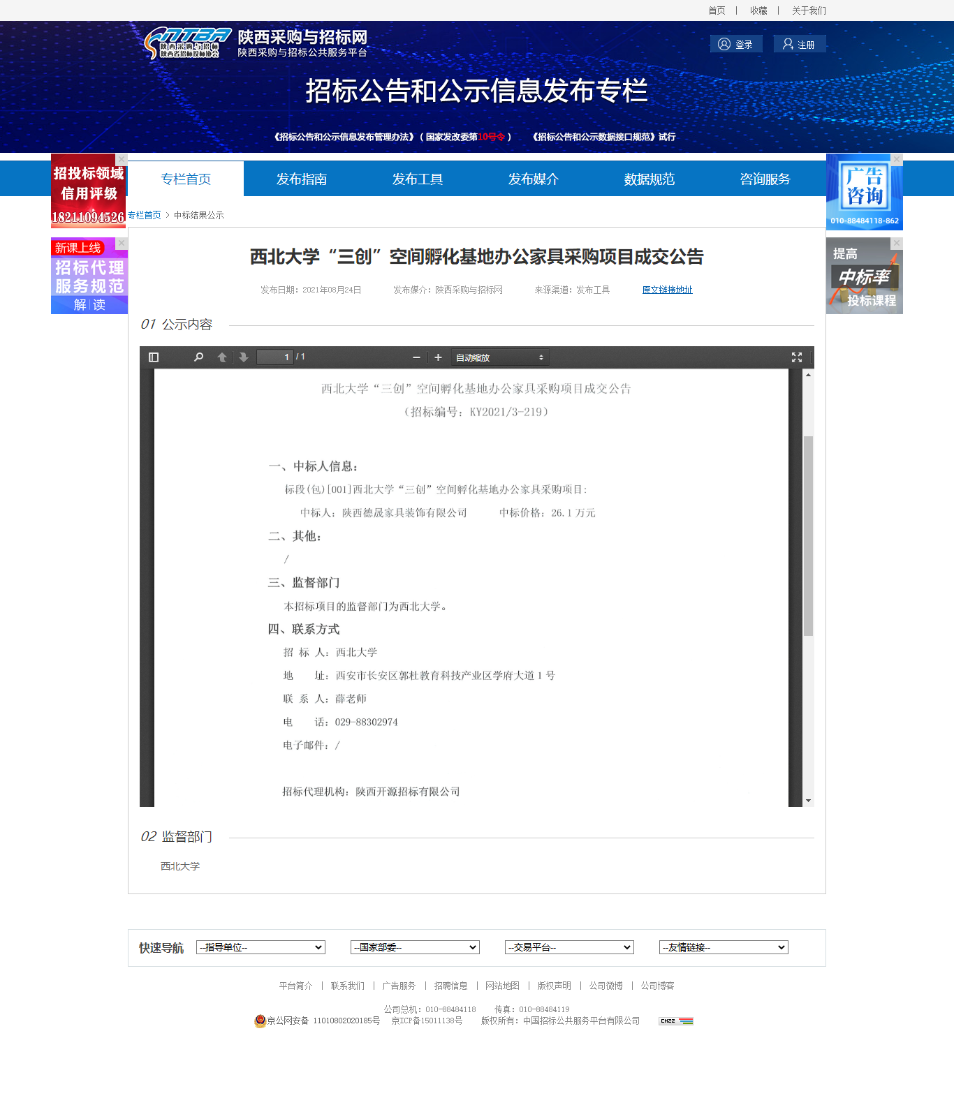 welcome欢迎光临威尼斯集团“三创”空间孵化基地办公家具采购项目成交公告 作者: 编辑:采购与招标办公室 时间:2021-08-24 原公告地址:http://bulletin.sntba.com/resultBulletin/2021-08-24/334826.html