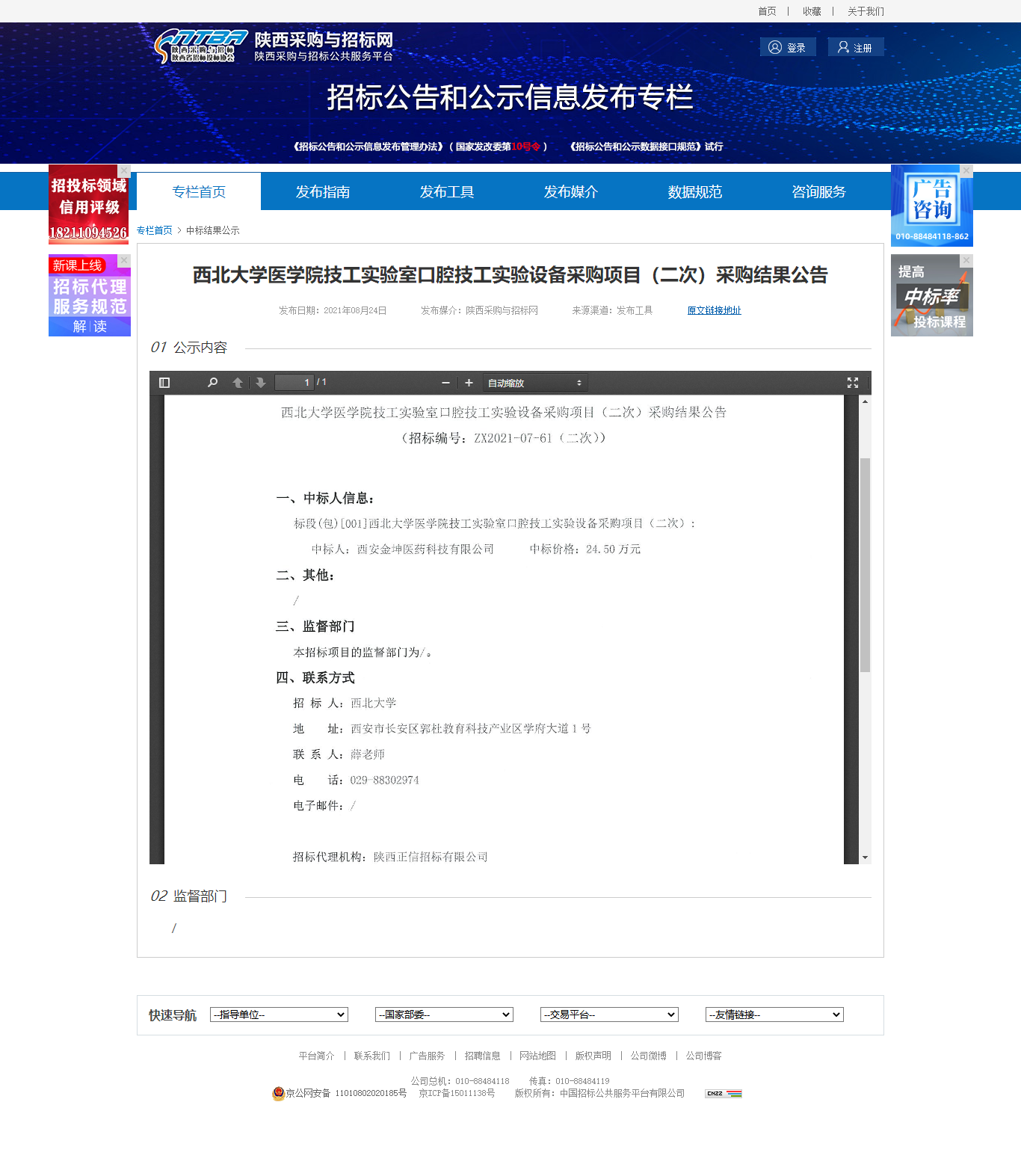 welcome欢迎光临威尼斯集团医学院技工实验室口腔技工实验设备采购项目(二次)采购结果公告 作者: 编辑:采购与招标办公室 时间:2021-08-24 原公告地址:http://bulletin.sntba.com/resultBulletin/2021-08-24/334778.html