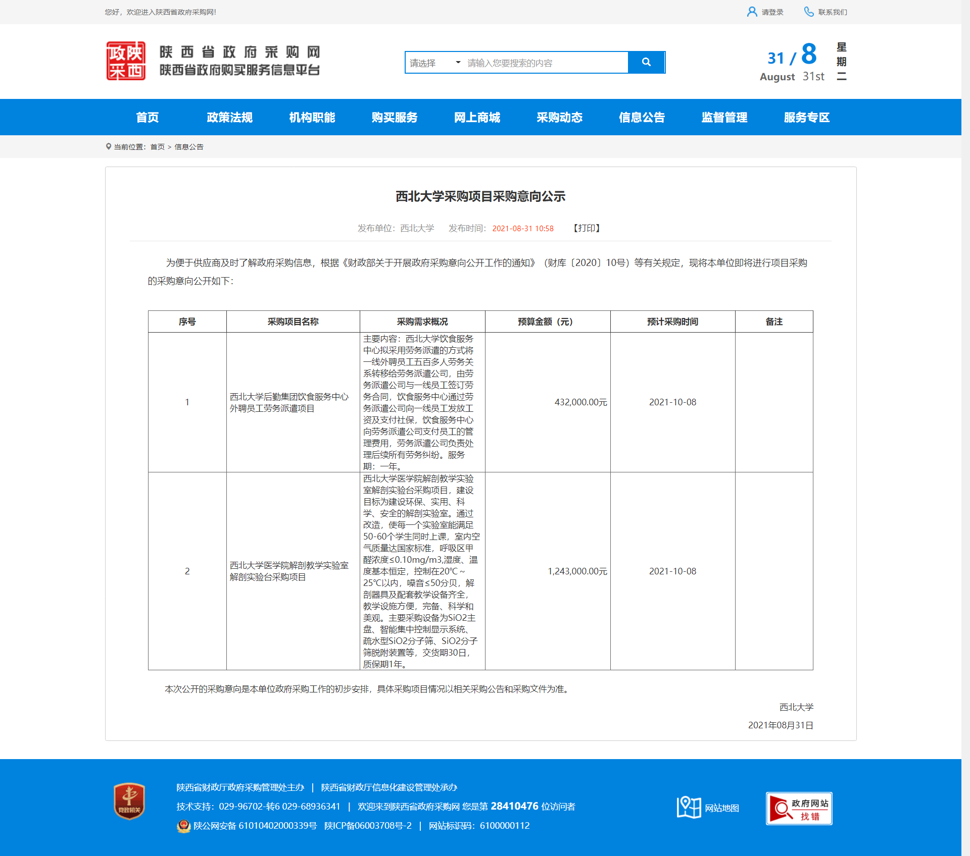 welcome欢迎光临威尼斯集团采购项目采购意向公示 作者: 编辑:采购与招标办公室 时间:2021-08-31 原公告地址:http://www.ccgp-shaanxi.gov.cn/notice/noticeDetail.do?noticeguid=8a85be337b0460f8017b9a22be817f9f