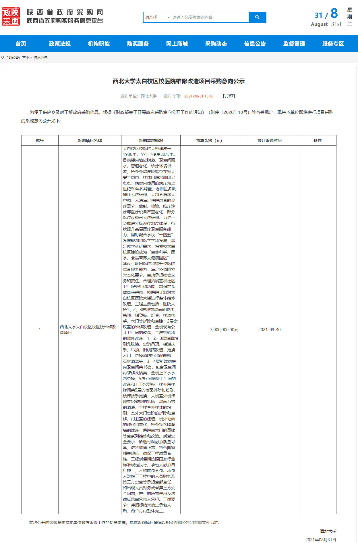 welcome欢迎光临威尼斯集团太白校区校医院维修改造项目采购意向公示