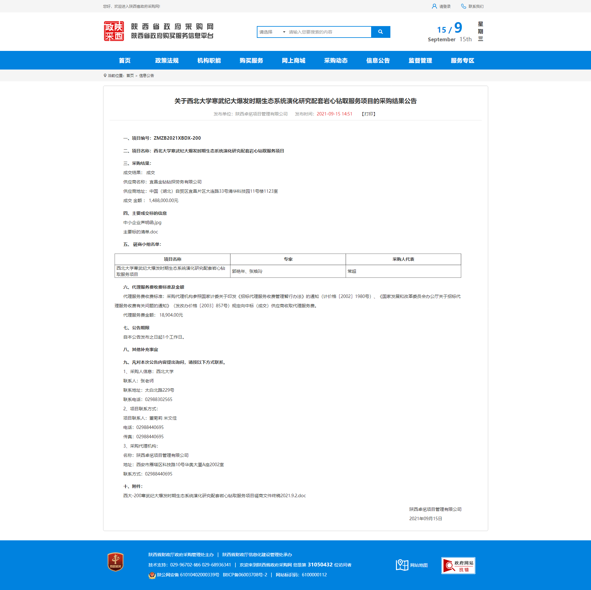 关于welcome欢迎光临威尼斯集团寒武纪大爆发时期生态系统演化研究配套岩心钻取服务项目的采购结果公告