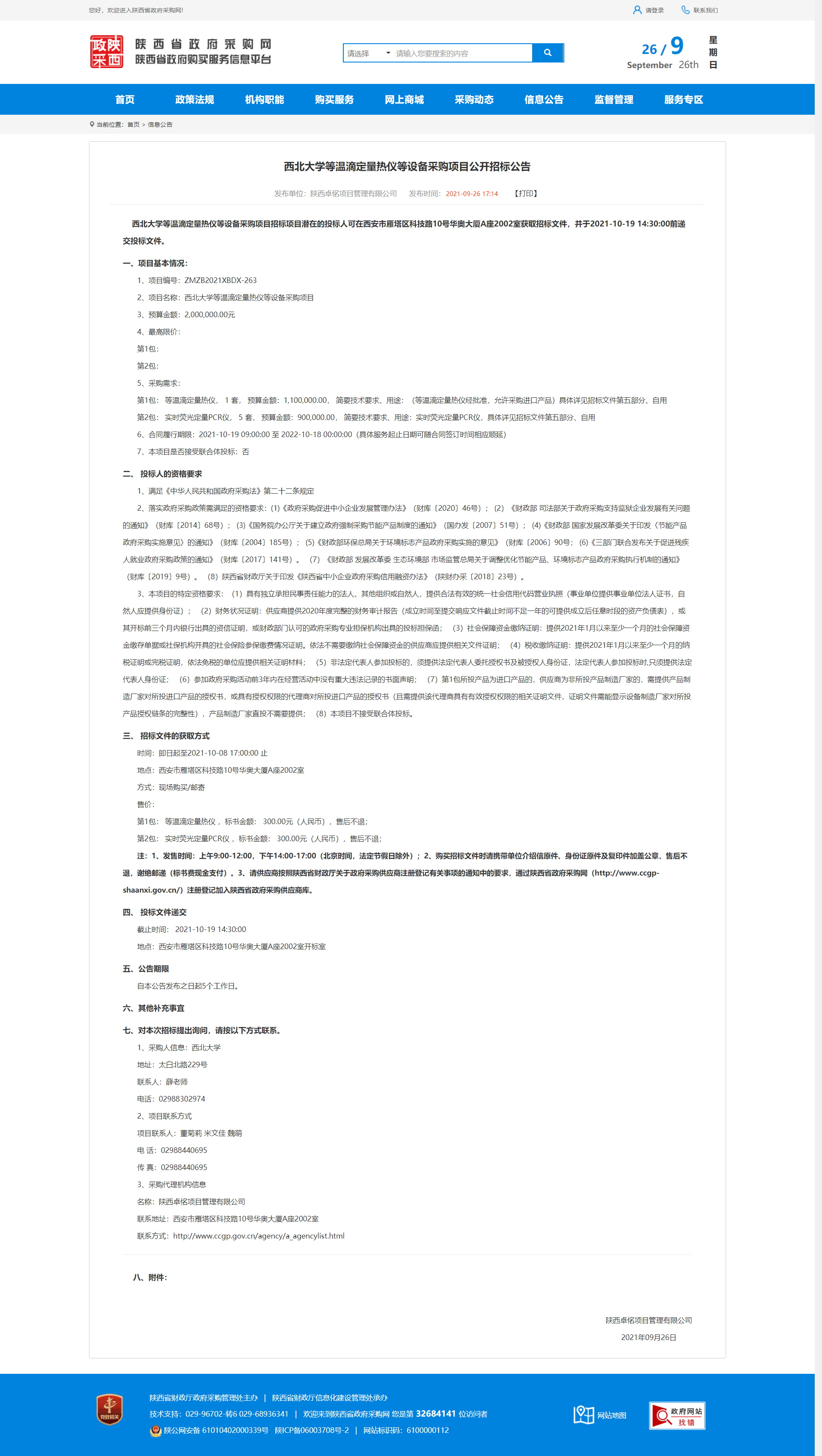 welcome欢迎光临威尼斯集团等温滴定量热仪等设备采购项目公开招标公告 作者: 编辑:采购与招标办公室 时间:2021-09-26 原公告地址:http://www.ccgp-shaanxi.gov.cn/notice/noticeDetail.do?noticeguid=8a85be317c20d707017c21545fc51220