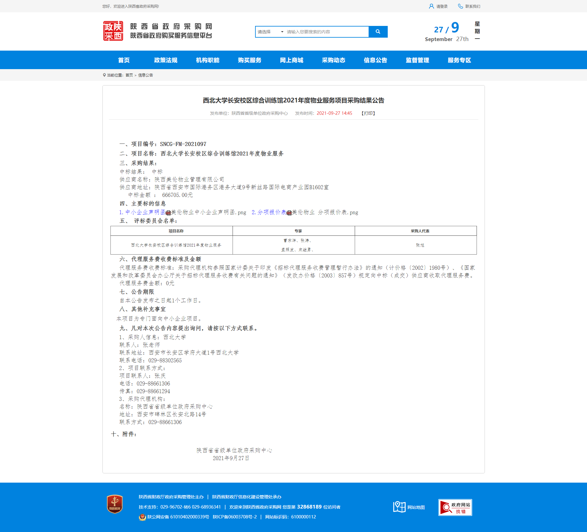关于welcome欢迎光临威尼斯集团长安校区综合训练馆2021年度物业服务项目采购结果公告