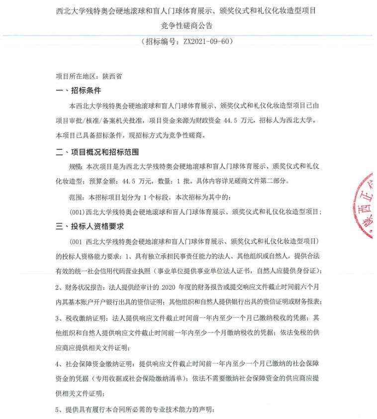 welcome欢迎光临威尼斯集团残特奥会硬地滚球和盲人门球体育展示、颁奖仪式和礼仪化妆造型项目竞争性磋商公告