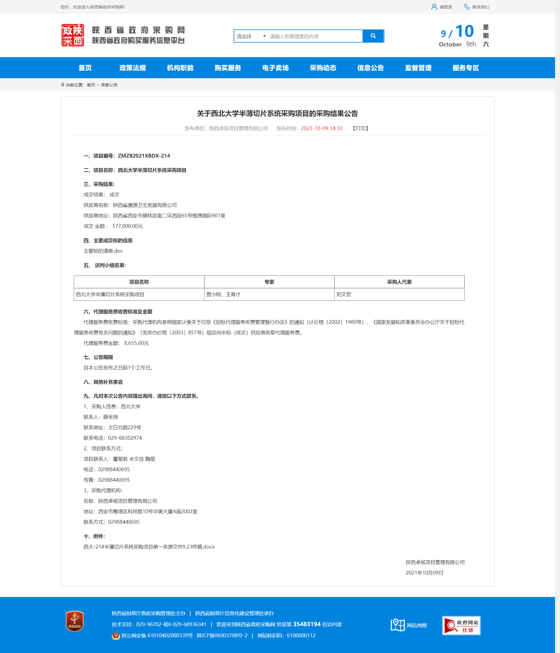 关于welcome欢迎光临威尼斯集团半薄切片系统采购项目的采购结果公告 作者: 编辑:采购与招标办公室 时间:2021-10-09 原公告地址:http://www.ccgp-shaanxi.gov.cn/notice/noticeDetail.do?noticeguid=8a85be337c20d0b4017c63ab46ca5540