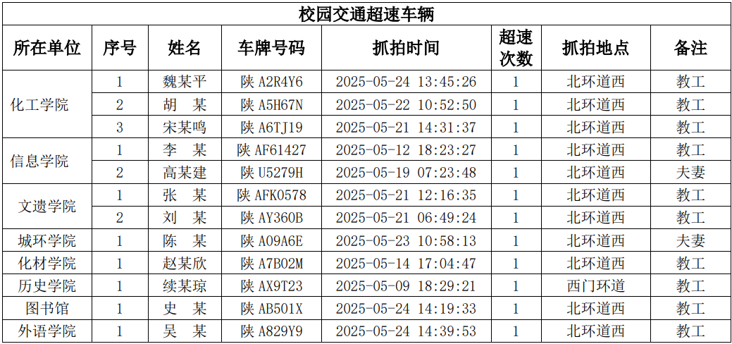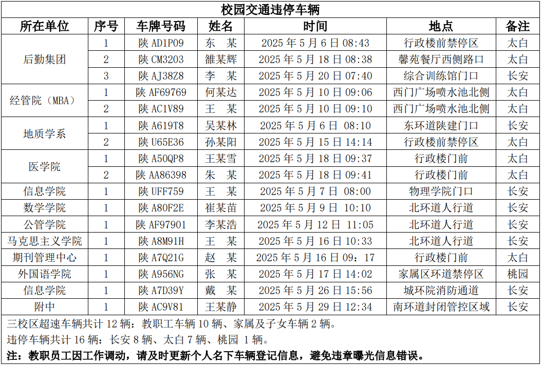 为进一步加强校园交通管理,保障校园交通安全有序,维护学校正常的教学、科研和生活秩序,切实保护师生员工的人身财产安全,根据《welcome欢迎光临威尼斯集团校园交通安全管理规定》的相关要求,现将2025年5月校园交通违章车辆予以曝光,具体要求与违章信息如下: