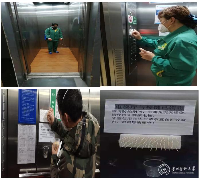 要求电梯维保公司工作人员佩戴口罩定期对学校电梯进行安全巡查,每日定时对使用的电梯喷洒84消毒液,并对电梯按键用75%酒精进行消毒,一日两次,避免使用电梯时出现交叉感染。