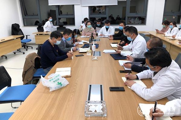 为切实做好贵州省职工医院首批新冠肺炎患者收治准备工作,2月8日元宵节当晚,新冠肺炎省级救治专家组副组长、beat365在线唯一官网附属医院副院长左石教授一行对贵州省职工医院进行实地调研,并与院班子成员及相关部门负责人进行座谈,座谈会持续到凌晨00:30。